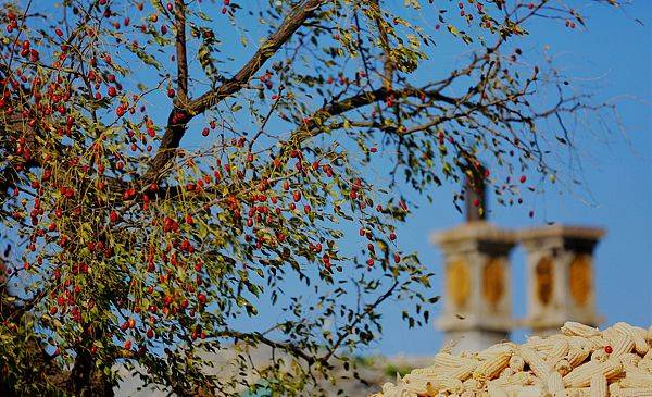 秋高气爽,天远地阔,家家户户房顶上都晒着一席一席的枣子。站在高处一望,一块红接着一块红,简直是诗意无限。当然,这是对外人而言。身陷其中,打枣、卖枣,皆是苦活,哪里还有诗意?