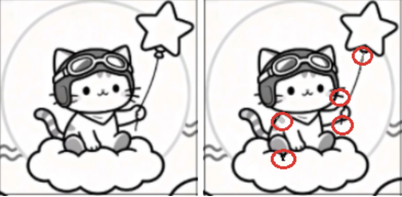 两幅图有五处不同,你能看出来吗?