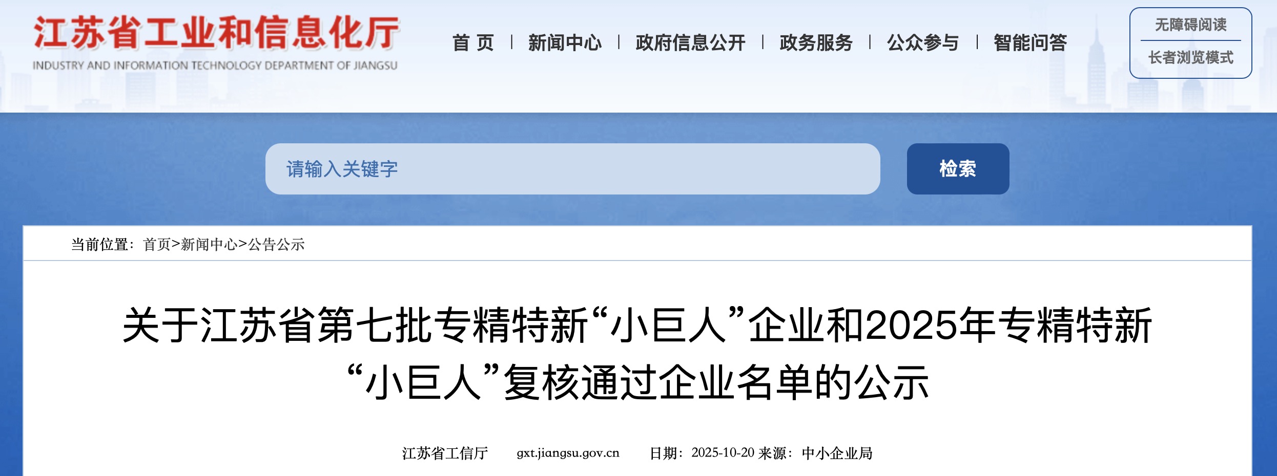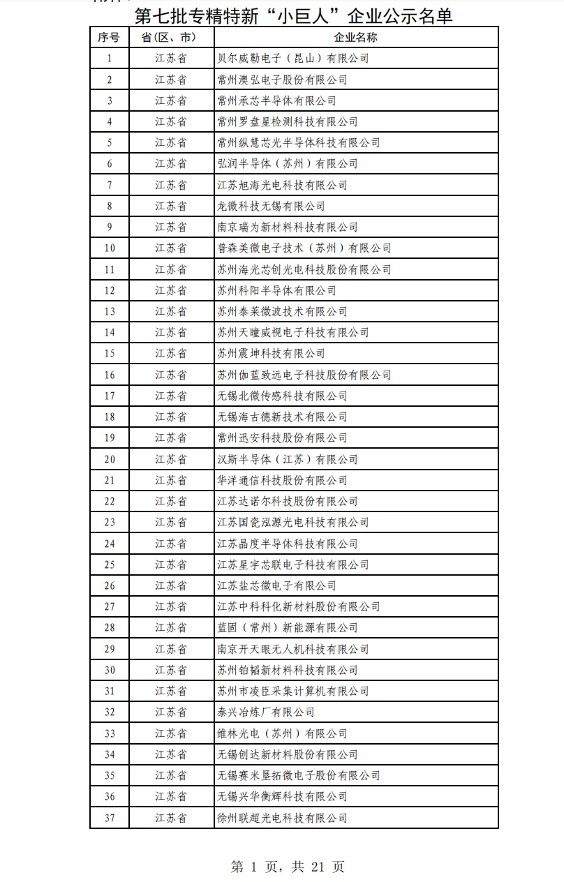 江苏省第七批专精特新“小巨人”企业公示