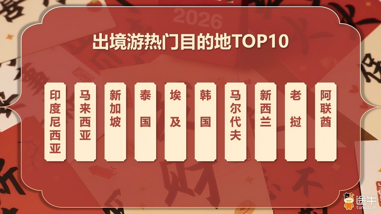 1月3日,记者从途牛发布的《2026元旦出游消费盘点》获悉,80、90后家庭客群主导元旦假期旅游消费,出游人次占比接近70%;主题乐园游、传统文化游、冰雪旅游、温泉游、避寒游、新年祈福游等玩法组合成新年文旅消费多元热潮。境内游热门目的地中,上海、北京、广州、三亚、成都、重庆、西安、南京、哈尔滨、杭州等出游热度排名靠前。