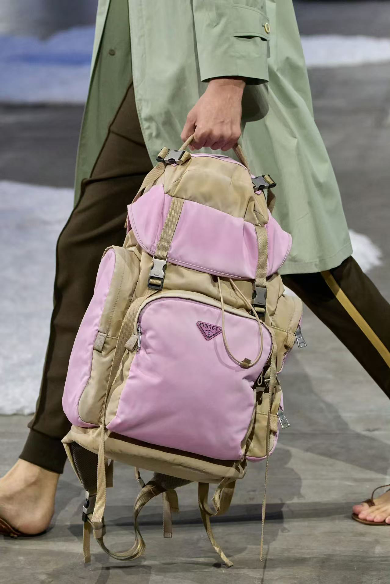 实用主义行囊持续成为热点。能够解放双手、适应多场景的包款备受推崇,设计上呼应着“随时出发”的度假心境。例如,Prada推出的全新索绳袋,采用缤纷色彩和尼龙等多种材质,设计简约随性。其男装系列中也出现了玩味十足的拼色手袋,兼顾户外感与中性风格。路易威登此前推出的可折叠、多背法机车包,也体现了对柔韧特性与多功能性的追求。