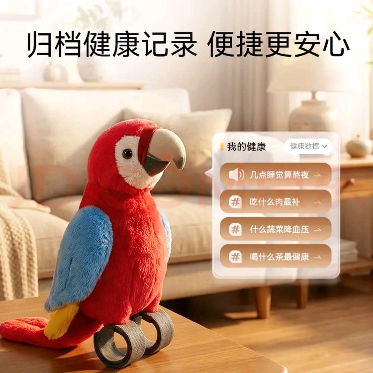 老人玩具长啥样?记者搜索发现,这种名叫“唠唠鹦”的老人AI玩具售价只要一百多元,模样就是一只毛绒绒的鹦鹉玩具,它可以说天津话、四川话、河南话、广东话、上海话……还能告诉你什么东西吃了对血压有好处、什么肉最补、几点睡就算熬夜了。据介绍,这是专为银发人群设计的,既懂方言,也懂怎么养生,数据库中还内置了海量戏曲、评书等深受老年人喜爱的内容,让他们的生活多些回应与陪伴。除此之外,这款AI玩具还具备紧急呼救、京东健康服务联动及子女日志同步等多重守护功能。技术人员介绍说,此次全新上线的AI玩具,依托京东 JoyInside 的 AI 技术能力及超级供应链优势,针对不同年龄段用户的互动和陪伴需求进行了独特设计和开发。