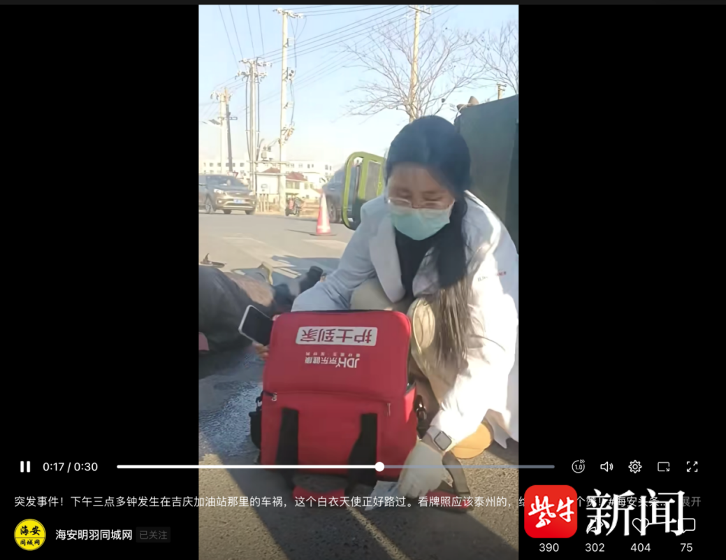 南通街头暖心一瞬:白衣天使返程途中偶遇事故,果断停车救人