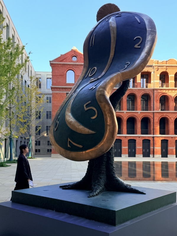上海外滩老市府达利展中的大型雕塑装置《时间之舞I 》吸引众多观众合影打卡(图源:大众点评达人@王夜里)