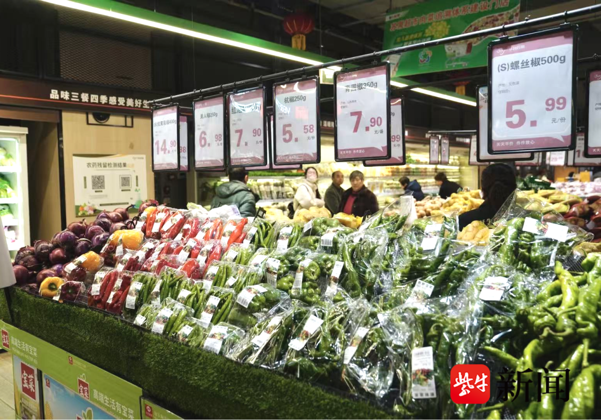 春节期间,消费者对蔬菜的需求量较大,但节假日人口流动、物流运输压力、天气多变等因素,导致蔬菜的供应难度相应加大。苏果超市相关负责人表示,与居民菜篮子息息相关的生鲜商品供应稳定,同时,为确保顾客买到的每一份蔬菜都新鲜直达,苏果超市的生鲜商品实行“日配到店”模式。物流大仓会根据门店销售情况动态备货和补货,门店无需额外囤货。