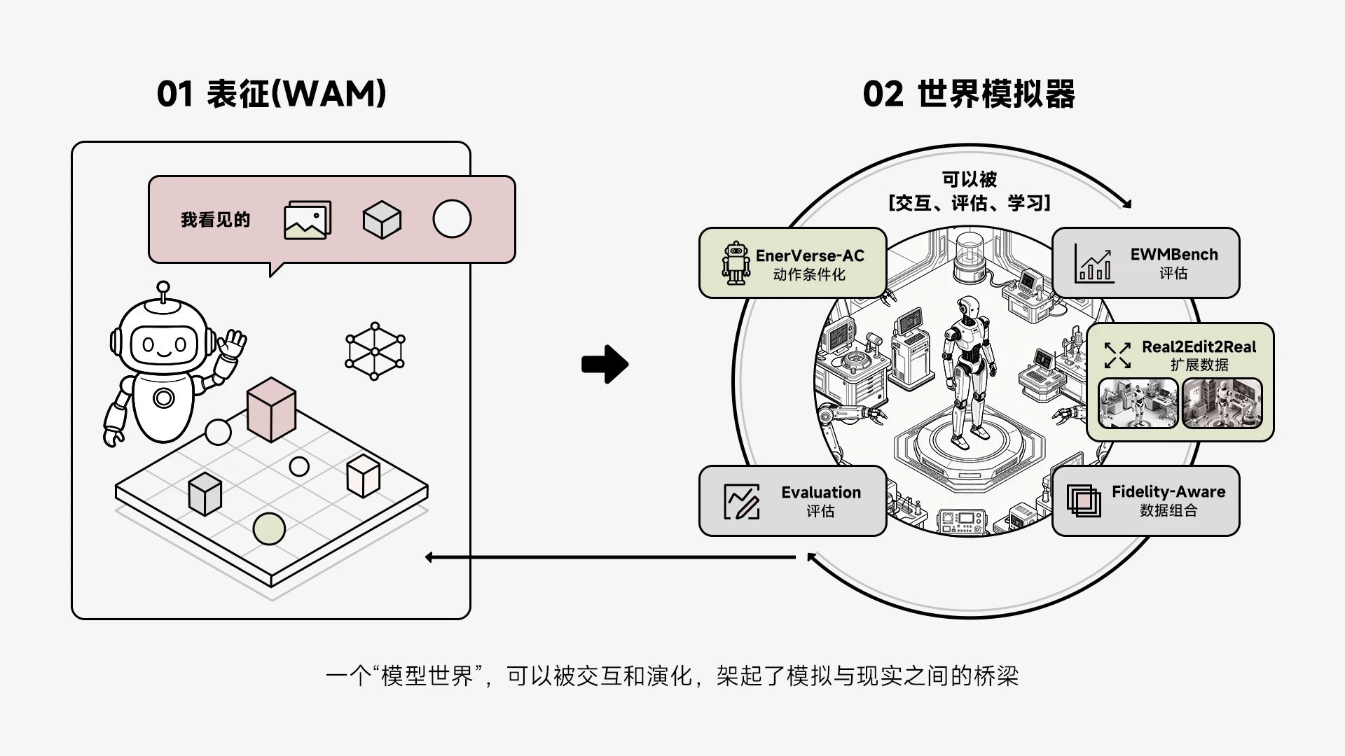 GE-Sim 2.0 的核心突破在于将世界模型由单一表征转化为具备环境级能力的系统基础设施。针对机器人训练高度依赖真实环境、试错成本高昂的痛点,GE-Sim 2.0 提供了一个能够严格响应机器人动作信号、遵循物理与语义逻辑的可操作世界。通过“模型生成世界”,机器人可以在模拟环境中完成大规模闭环训练,而不再受限于现实数据获取的效率瓶颈。