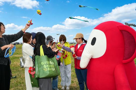 2026年潍坊风筝节如约而至,漫天纸鸢竞相起舞,潍坊滨海国际放飞场更是被国际风筝界公认为世界最大、放飞条件最优的陆地风筝放飞基地。在这场传统与现代碰撞的全球文化盛会,一只巨型“大润发购物袋”风筝意外成为焦点。购物袋下方悬挂着蛋挞、牛奶、辣椒等日常高频美食,现场不少观众驻足拍照,更有人偶“发哥”在现场派发自有品牌的零食饮料,社交媒体上也开始出现“大润发在潍坊风筝节现场空投美食”的热议。 艺雯 晓风