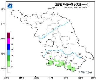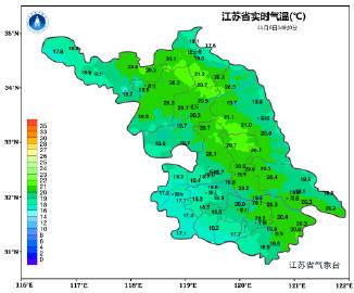 此刻,江苏省南部地区出现降水,温度:南部降水区域17℃左右,其他区域普遍18-20℃。