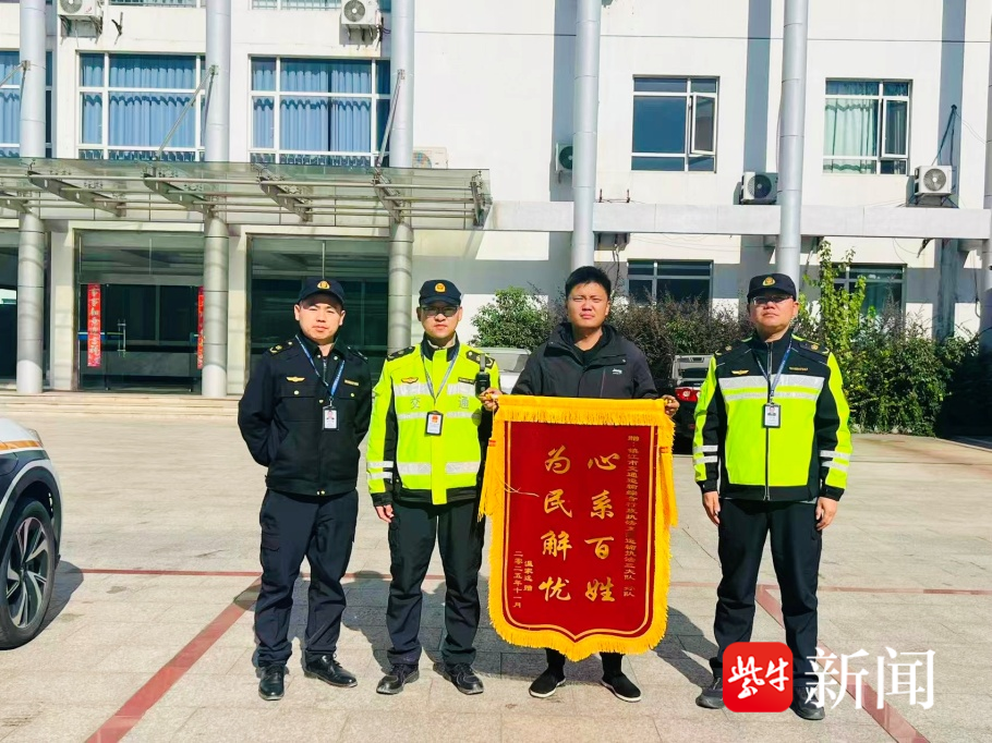 货车无证运易燃品被查,镇江执法护送卸货获锦旗