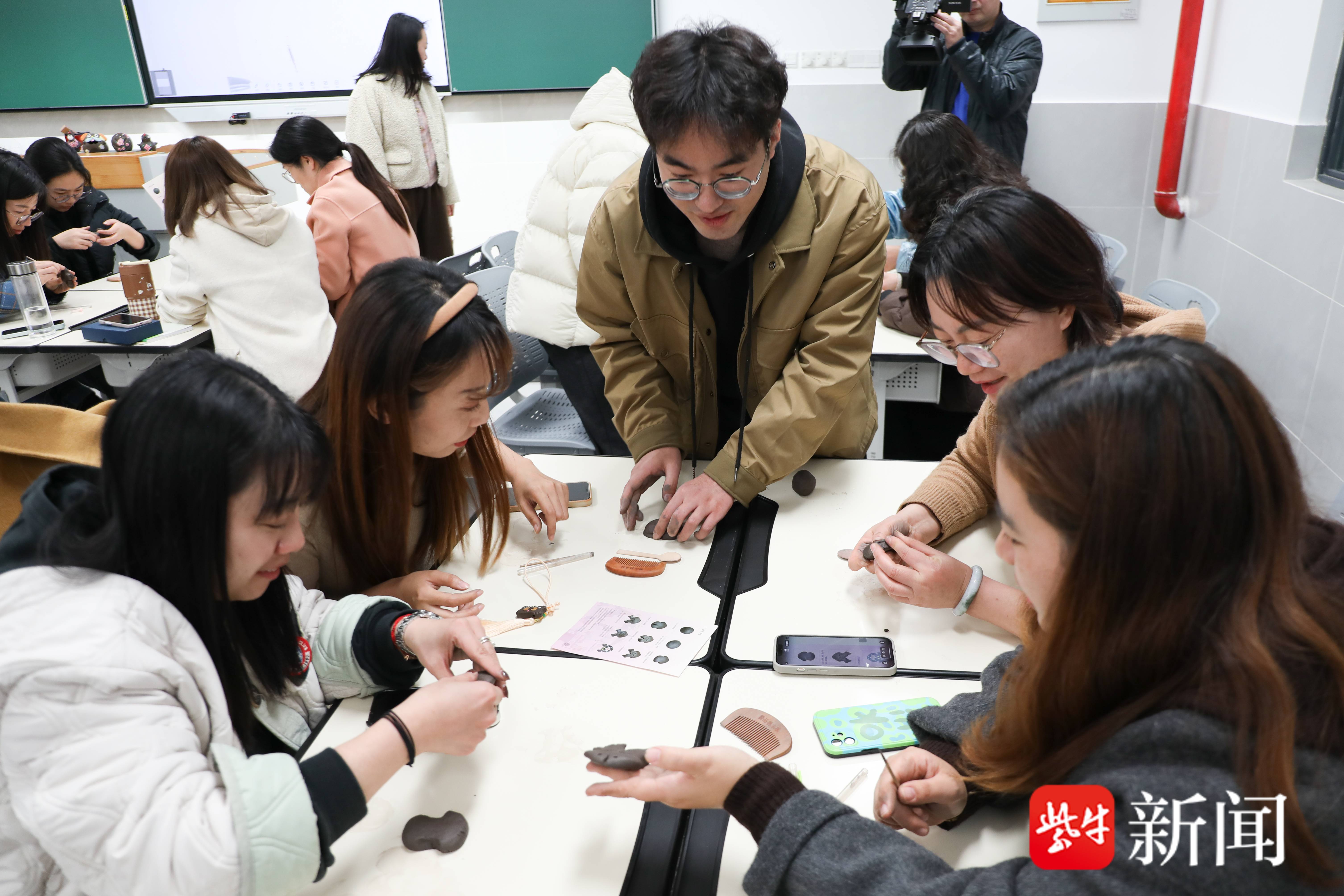 活动还特别安排了省级非遗文化“太平泥叫叫”的“快乐成长小组”活动环节。江苏省非遗代表性传承人周宝康老师到场指导,师生共同体验太平泥叫叫的制作,感受传统文化的独特魅力。在导师的指导下,同学们了解泥塑技巧,体会到了“做中学,学中做”的教育理念,更是在轻松愉悦的氛围中感受到了快乐。