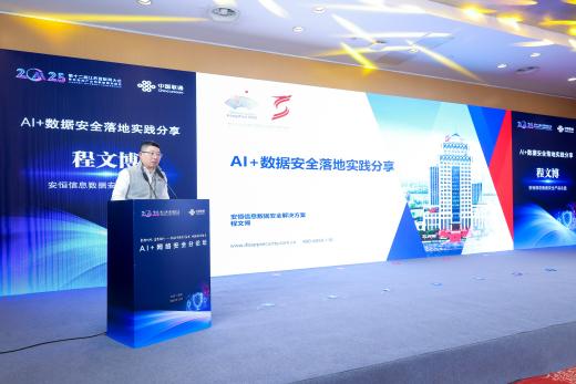 在实践分享环节,安恒信息、江苏智檬智能的行业专家分别带来AI+数据安全落地案例、文化出海网络安全风险防控路径的实战分享。