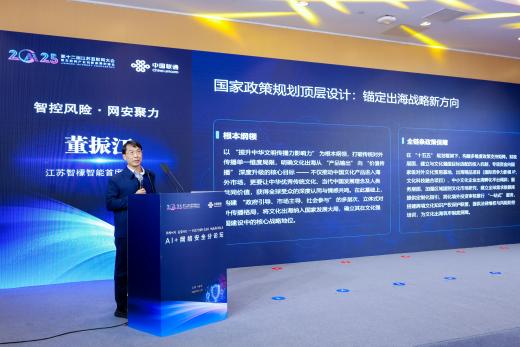 省委网信办副主任陈智在致辞中指出,江苏AI创新势头强劲,目前全省已有60款大模型通过中央网信办备案、37款完成应用登记上线,位居全国前列。他围绕“AI+网络安全”提出三点体会:一是确保AI自身安全可靠是前提;二是AI驱动防护能力跃升是核心;三是产学研用有机结合是关键。