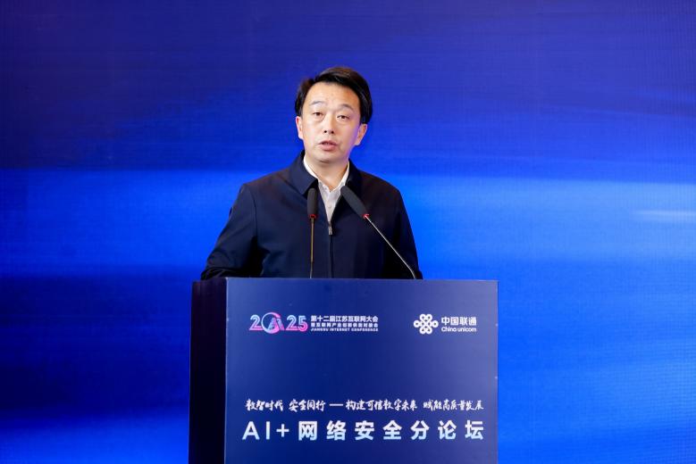 数智浪潮澎湃向前,安全防线筑牢根基。在数字化转型向纵深推进的当下,人工智能与网络安全的融合创新,已成为护航数字经济高质量发展的核心驱动力。12月2日下午,2025(第十二届)江苏互联网大会AI+网络安全分论坛在南京顺利召开。本次论坛由省互联网协会、省网络空间安全学会主办,中国联通江苏省分公司承办,杭州安恒信息技术股份有限公司协办,以“数智时代,安全同行——构建可信数字未来,赋能高质量发展”为主题,汇聚政府主管部门领导、行业权威专家、产业链合作伙伴等多方力量,共同探讨AI与网络安全融合的新路径、新方案,为数字经济高质量发展筑牢安全屏障。