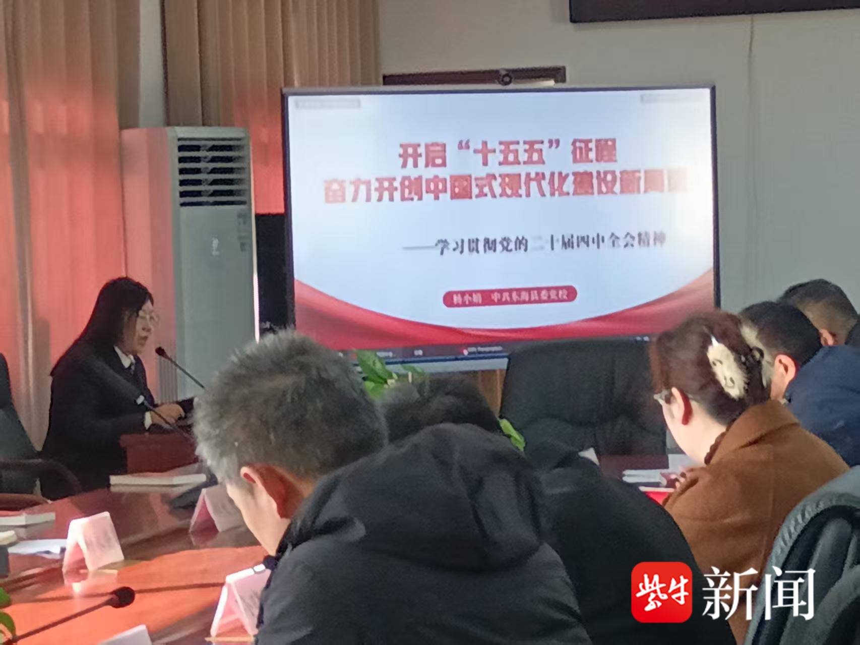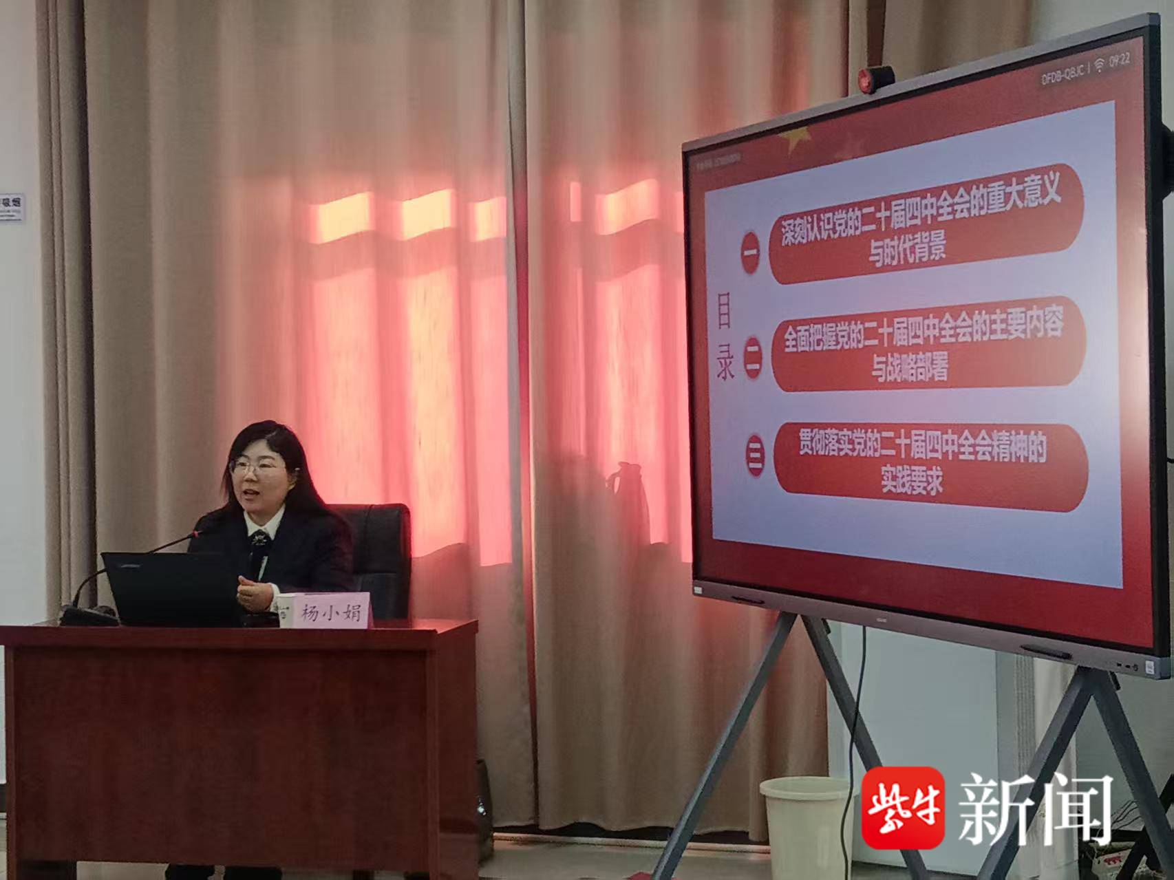扬子晚报网11月5日讯(通讯员 宋彦伟 记者 孙锐)为推动党的二十届四中全会精神落地基层、浸润民心,精准传递“十五五”发展战略部署,12月4日,东海县双店镇党委举办学习贯彻党的二十届四中全会精神专题宣讲报告会,邀请东海县委党校校委委员、办公室主任、全市首批理论宣讲十佳个人杨小娟,为党政机关干部、各村书记、企事业单位负责人带来了一场“开启‘十五五’征程,奋力开创中国式现代化建设新局面”的精彩授课。