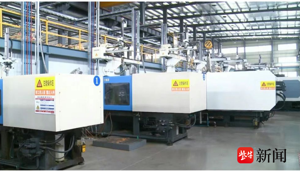 在盐城经开区江苏阳城汽车配件有限公司注塑车间,一台台智能化注塑机整齐排列,技术人员只需要在控制中心输入生产参数,一个个零部件成品就被机械手准确无误地抓取到传送带上,一派智能化生产场景。