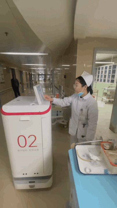“机器人主要承接了病区药品配送工作,全程采用全封闭运输舱设计,有效避免人工搬运可能造成的药品污染或交叉感染风险,同时,智能化作业也大大降低了人工成本。”该院总务处处长姚敏表示,早在去年,医院就已经启动了“外科楼药品配送机器人试点项目”,2台机器人累计运输1532次,日均订单达44单,单趟运输最大可达100kg,90%的订单在10分钟内完成配送,既能保障上午大批量药品的周期运输要求,又能响应临时零星配送需求。经测算,仅2台机器人就完成了外科南楼的配送任务,全面部署后可减少50%的人力投入。