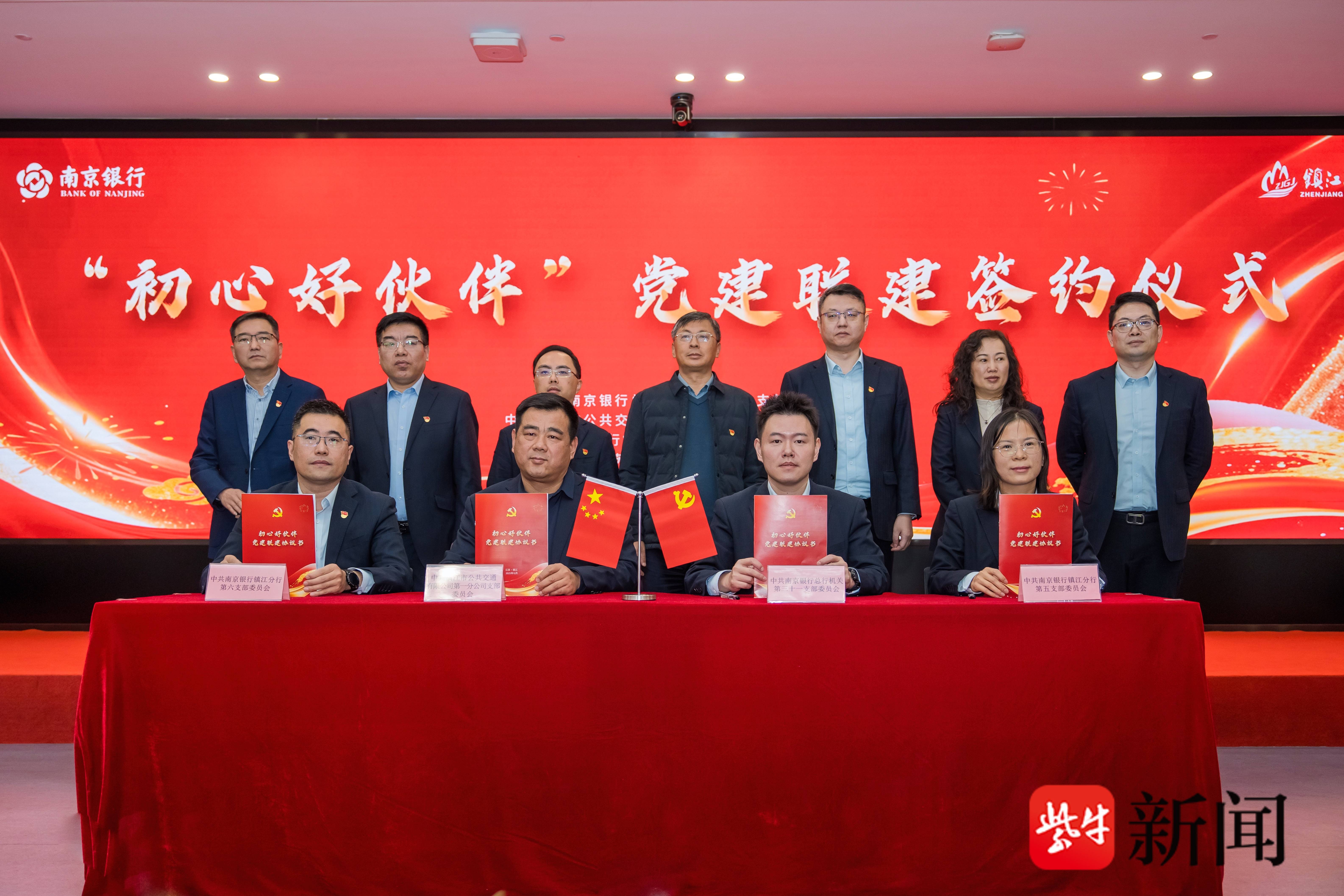 随后,镇江公交第一分公司党支部、南京银行总行机关第三十一党支部、南京银行镇江分行第五党支部、第六党支部的四位党支部书记共同签署党建合作协议,标志着党建联建合作正式落地。