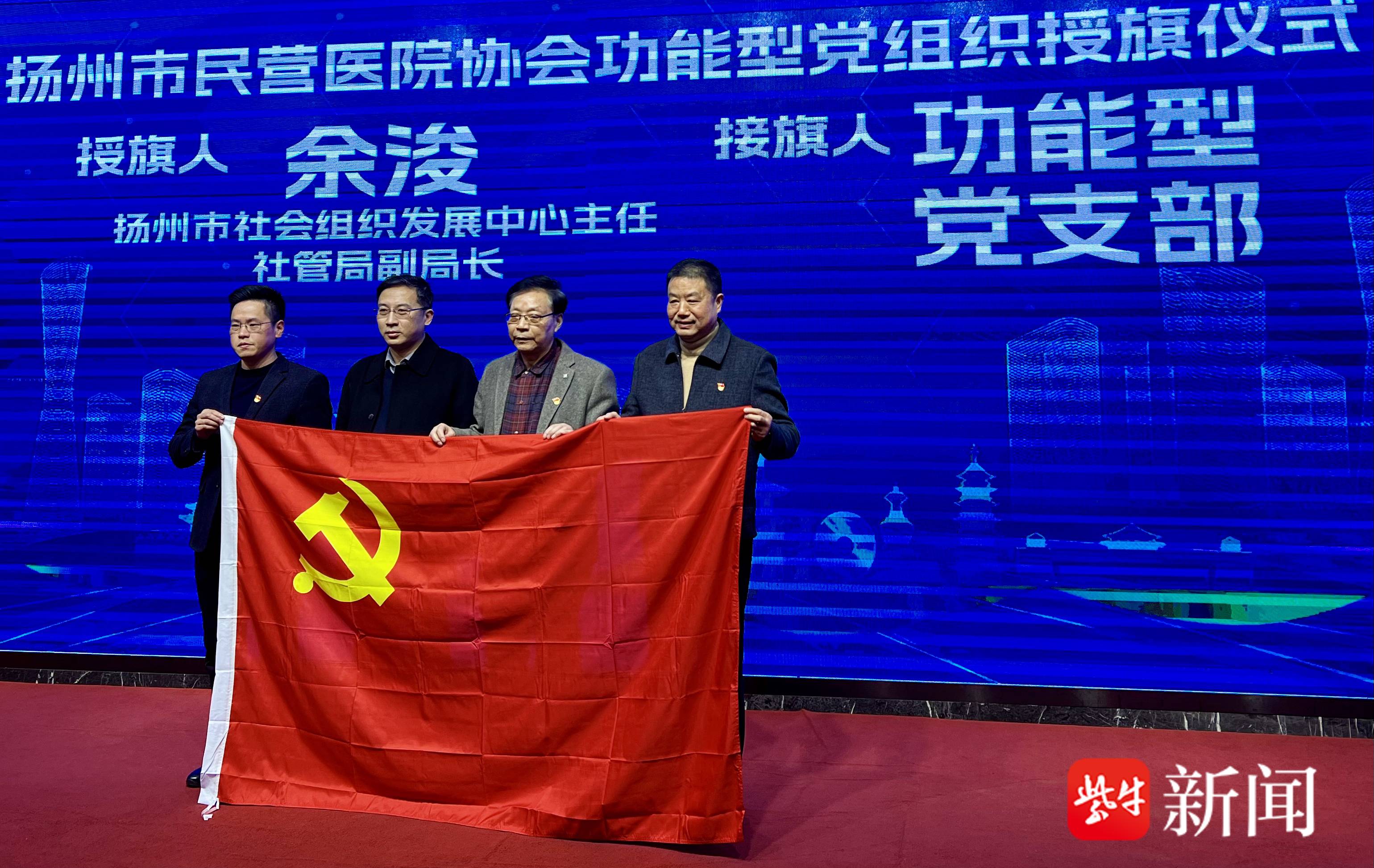 活动现场,进行扬州市民营医院协会功能型党组织授旗仪式。市社会组织发展中心主任、社管局副局长余浚,向协会功能型党支部书记、副会长兼秘书长戚红祥,组织委员、扬州东方医院党总支书高建广,宣传委员、扬州华东慧康医院医院党支部书记、副院长吴瑞旺授党旗。现场,进行扬州市民营医院协会口腔分会揭牌仪式。市卫健委医政处曾轶群处长,市社会组织发展中心主任、社管局副局长余浚,市医药卫生学会办公室高玉春主任,扬州友好医院董事长、院长贾玉清揭牌。口腔分会揭牌,启动筹备工作,将进一步整合资源、提升专业水平、推动行业自律,为市民提供更优质口腔健康服务。
