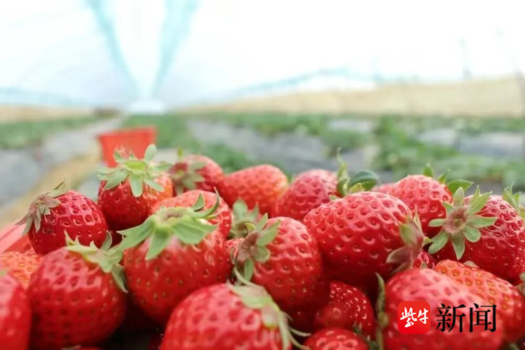 走进盱眙淮河镇糖豆草莓园大棚,一股清甜的气息扑面而来。藤蔓间,一颗颗草莓探出头来,长势喜人。