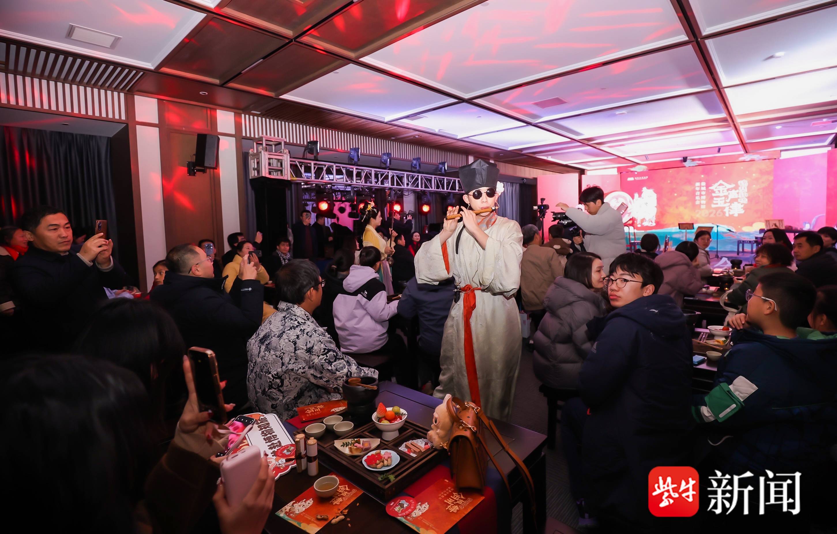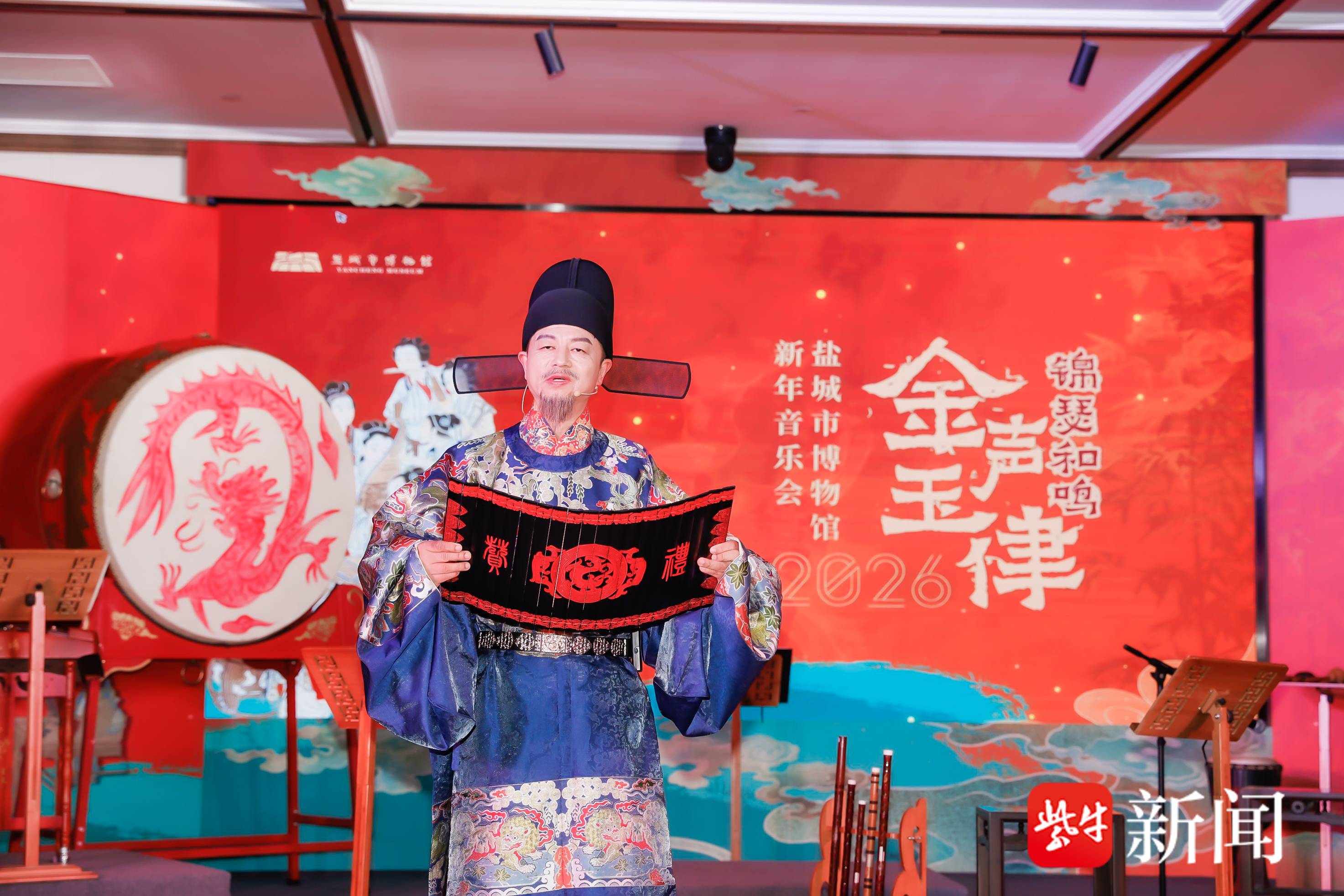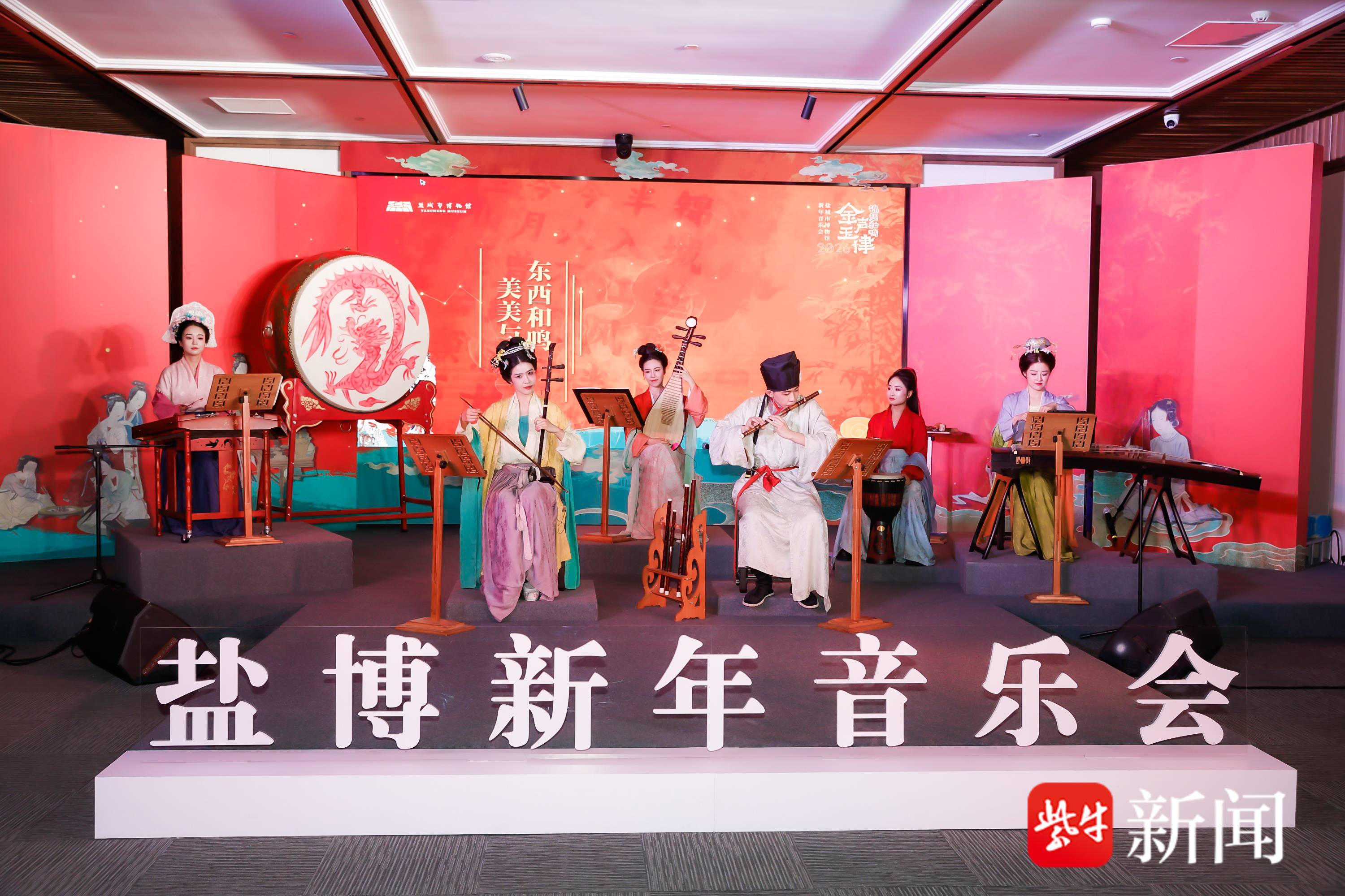 “金声玉律·锦瑟和鸣——盐博跨年迎新音乐会”奏响跨年的华彩序曲。在学术报告厅,音乐成为穿越历史长河的舟楫:从承载集体记忆的经典影视金曲,到灵动鲜活的国风流行改编;再进入中外对话的和谐共鸣,最终归于纯粹悠远的华夏雅韵,四个篇章层层递进,生动诠释了博物馆不仅是收藏过去的殿堂,更是演绎当下、启迪未来的舞台,古典与现代在此刻交织,谱写出新年的动人乐章。