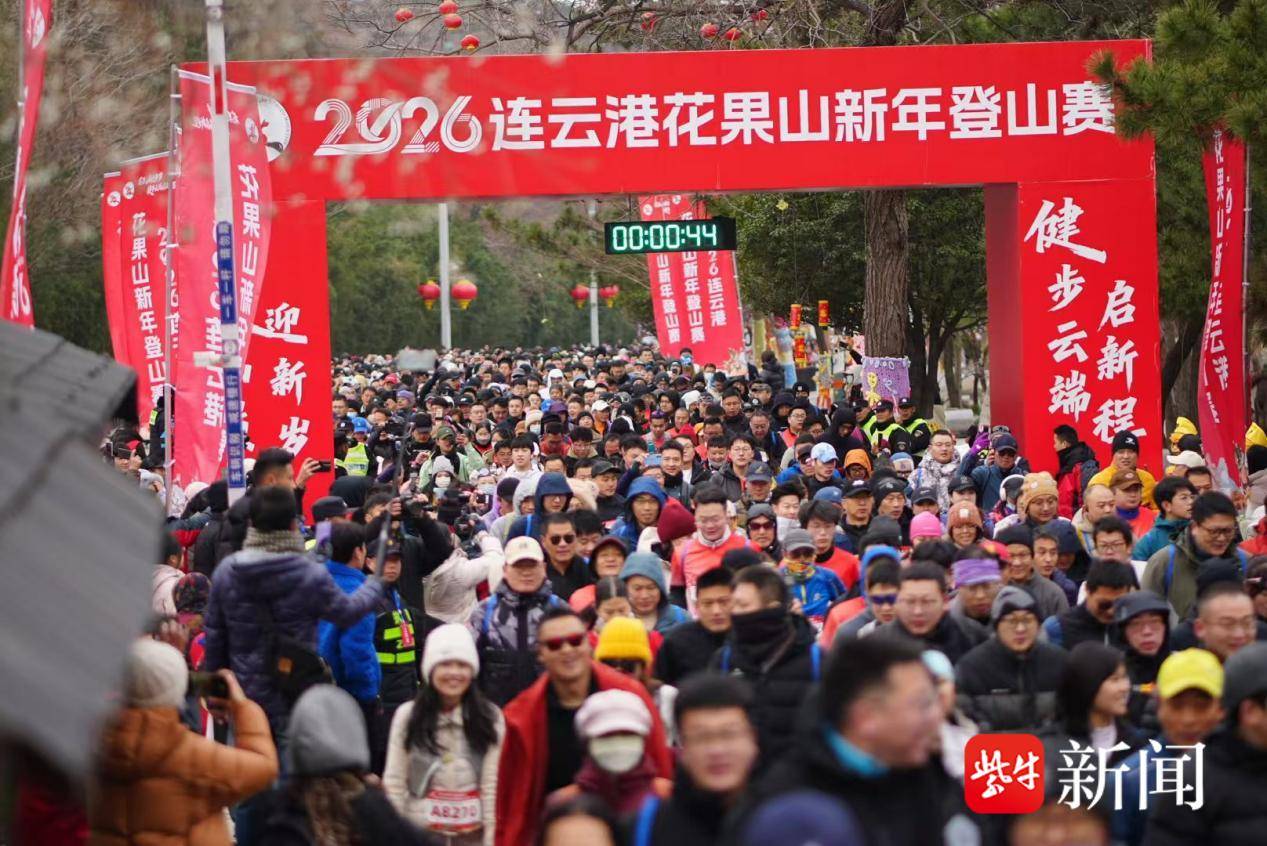 1月1日上午9时,随着一声清脆的发令枪响,“2026连云港花果山新年登山赛”在花果山景区山门广场激情开跑。来自全国各地的3000名登山爱好者精神抖擞,迎着新年的第一缕晨光,迈步奔向江苏省最高峰——玉女峰,以一场充满活力与文化韵味的登山盛会,共同迎接崭新一年的到来。