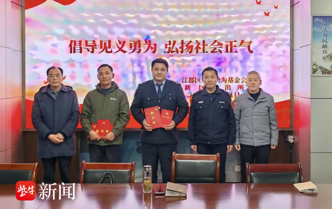 为表彰他们临危不惧、果断处置的见义勇为精神,扬州市公安局江都分局依据规定,确认了三人的义举。区见义勇为基金会决定,分别给予唐刘成、钱峰、杨庆楼奖励。