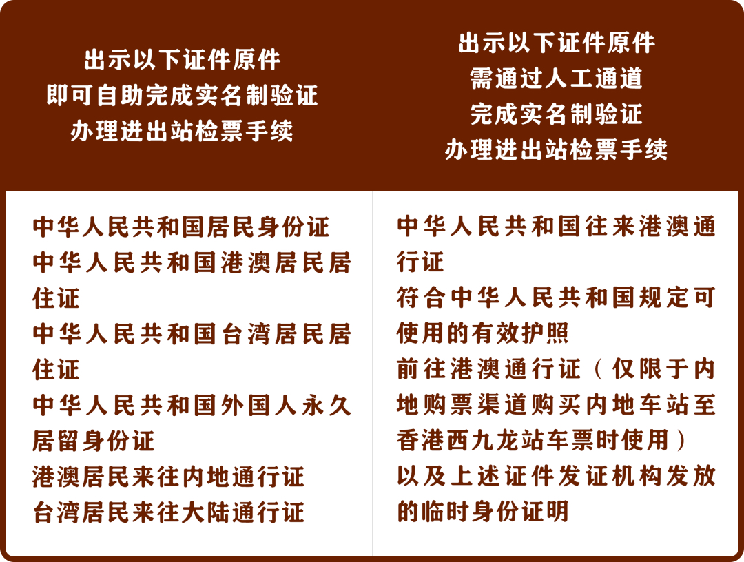 需要注意的是,香港西九龙站采用“一地两检”的通关模式。一定要记得携带身份证和港澳通行证(含签注,只有港澳通行证,没有有效签注,是不行的),出示以上证件原件即可自助完成实名制验证进出站检票手续。