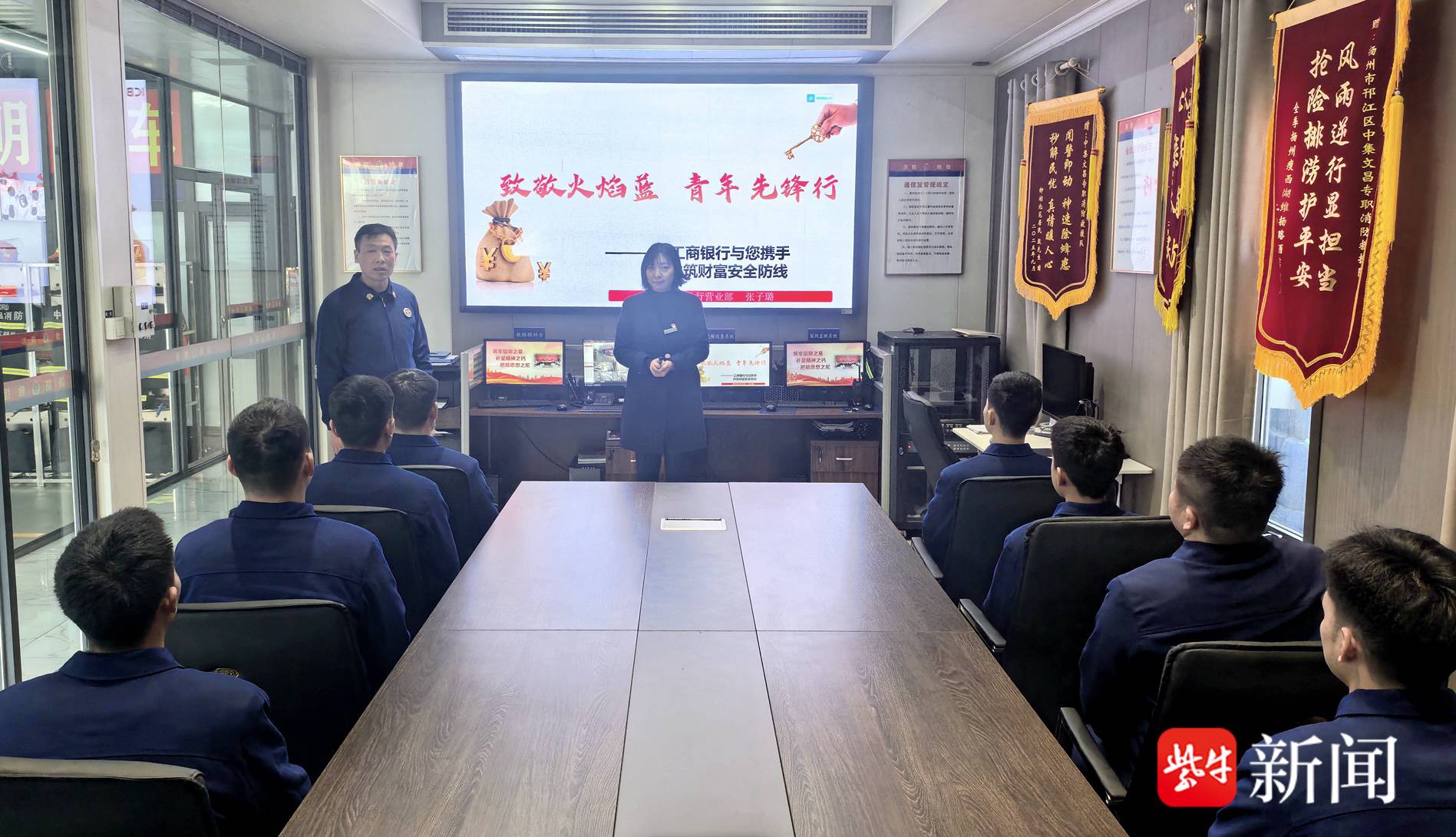 扬子晚报网1月14日讯(通讯员 陈晨 赵红伟 记者 陈咏)14日,中国工商银行扬州分行营业部青年志愿者服务队,走进邗江消防大队中集文昌消防救援站,开展以“致敬火焰蓝,青年先锋行”为主题的金融知识普及活动,为常年奋战在抢险救援一线的消防指战员送去实用、贴心的金融安全知识。
