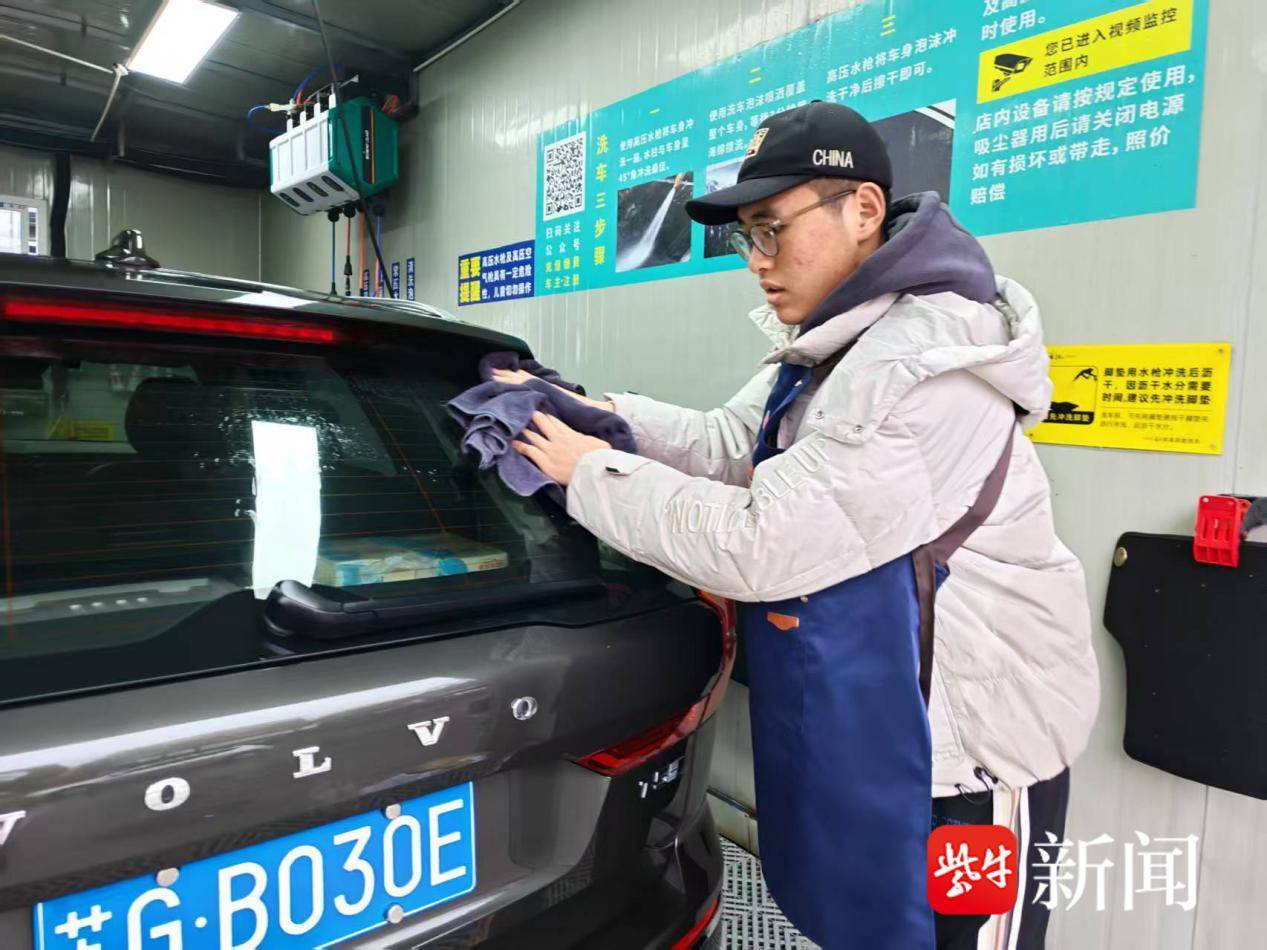 打开车门、俯身吸尘,每一个角落都不放过;手握高压水枪,精准冲洗车身的每一寸污渍;细致打匀泡沫,再用毛巾缓缓擦拭,连轮胎缝隙的尘埃都逐一清理……在师傅的全程指引下,两人一丝不苟地完成着每一道洗车工序。他们的动作或许算不上麻利,甚至有些笨拙,但眼神里的专注与认真,足以打动在场的每一个人。当一辆锃亮如新的车辆驶出操作区,车主竖起大拇指露出满意的笑容时,小陈和小夏的眼中瞬间泛起光彩——那是劳动带来的成就感,是被认可的喜悦,更是对自我价值的真切感知。