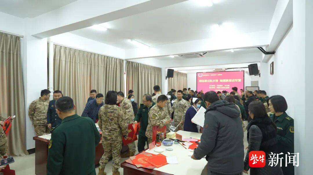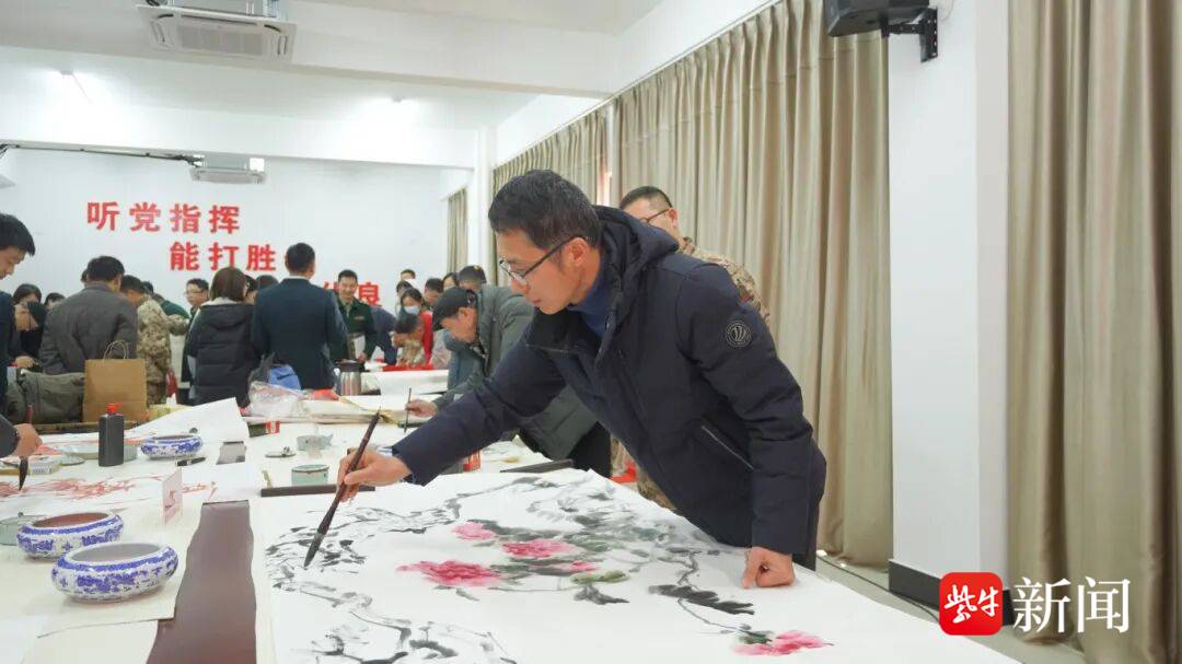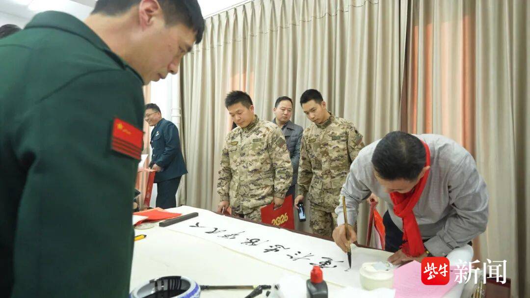 在武警江苏总队医院活动现场,医院政治委员戴一代表部队致辞,他表示,全院官兵们将以此为契机,在笔墨丹青中感悟传统文化魅力、厚植家国情怀,在军民同心的深厚情谊中凝聚强军力量,把这份关怀与敬意转化为守护一方平安的履职担当。