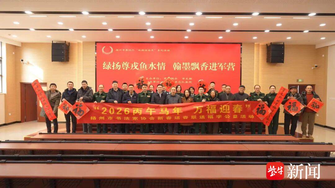 “冬韵凝香,翰墨传情”,1月29日,在扬州市第35个双拥活动月开展之际,一场以“绿扬尊戎鱼水情·翰墨飘香进军营”为主题的文化拥军活动温情启幕。