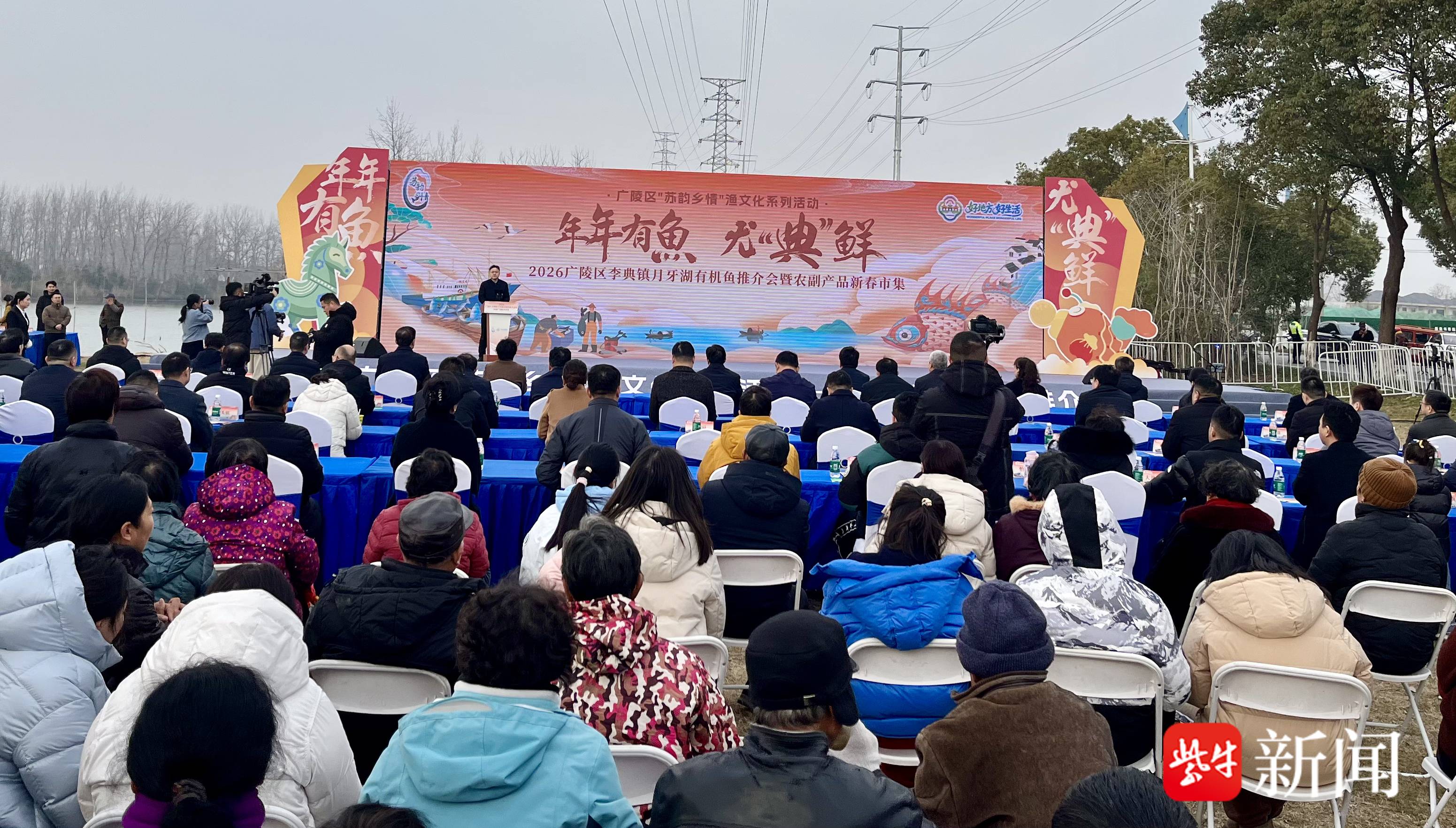 江风送暖,年味渐浓;鱼跃新春,福泽绵长。2月1日下午,扬州市东南郊长江边李典镇月牙湖畔,水光潋滟,渔韵悠长,一场融合生态之美、文化之韵、丰收之喜的盛大活动,在此精彩启幕。广陵区“苏韵乡情”渔文化系列活动之“年年有鱼尤‘典’鲜”月牙湖有机鱼推介会暨农副产品新春市集,在这里火热举办。扬州市委副书记、秘书长焦庆标参加活动。