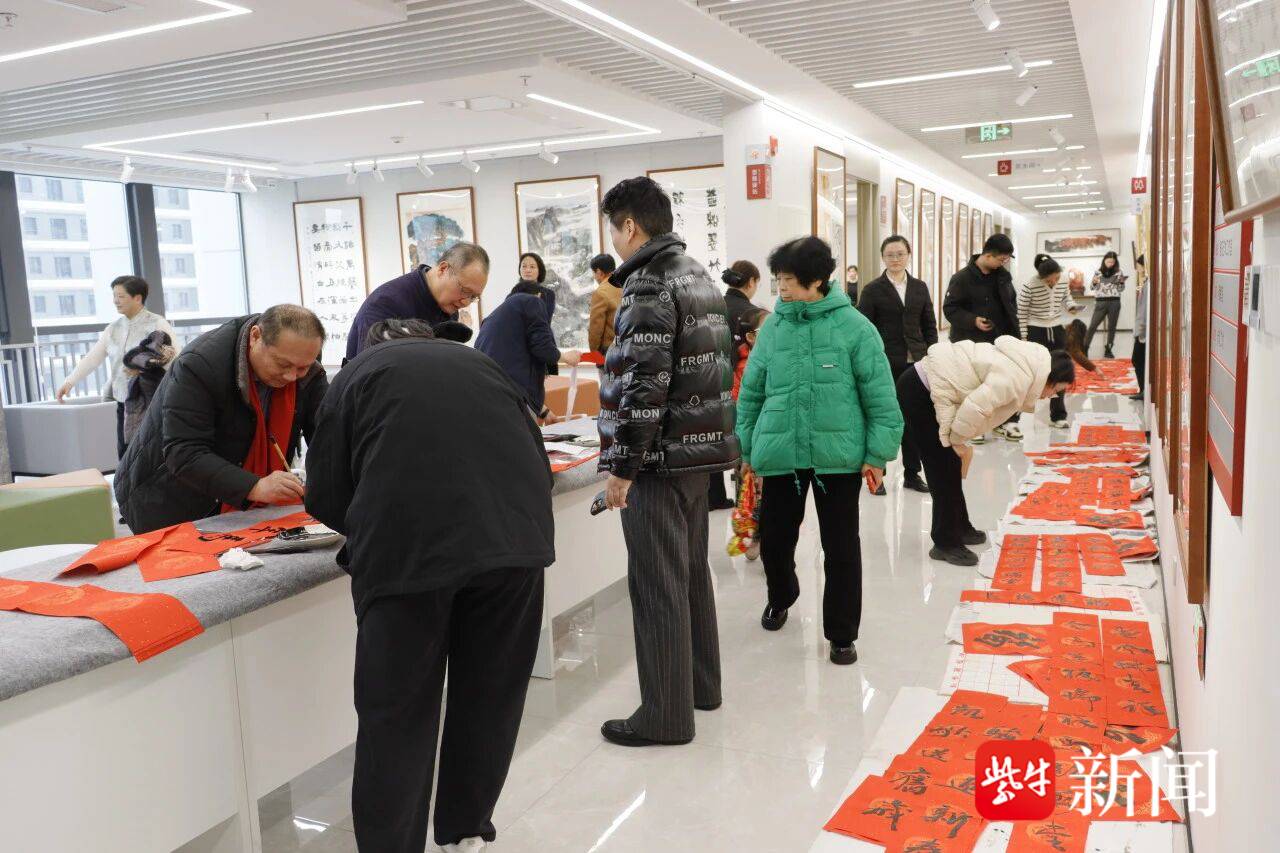 2月3日,南京市建邺区兴隆街道正达社区的居民兴高采烈地带走书法名家现场创作的春联。
