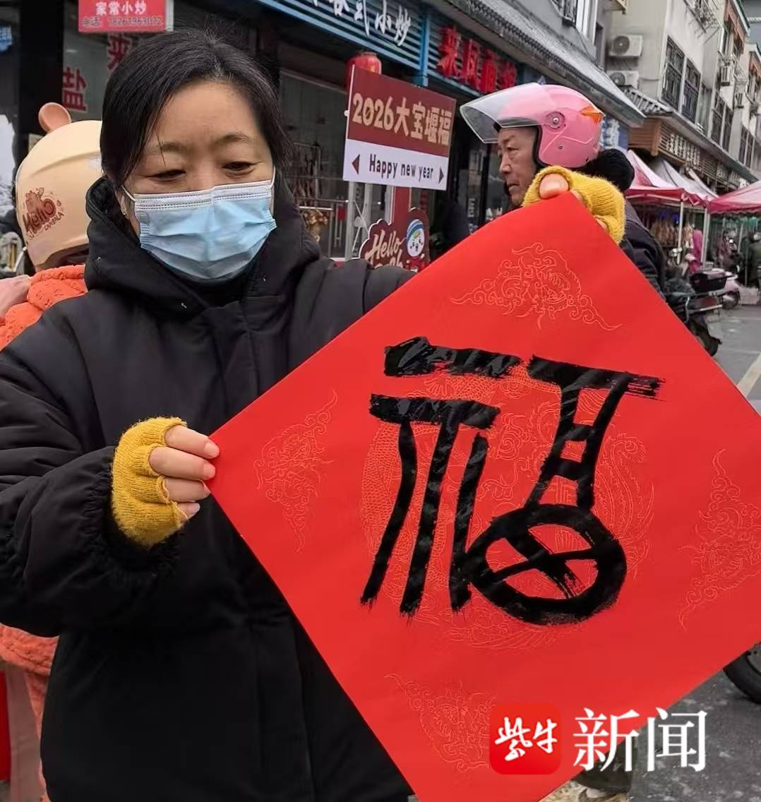 扬子晚报网2月10日讯(通讯员 陈新 记者 万凌云 姜天圣)2月10日,镇江市丹徒区宝堰镇农贸市场旁人群涌动、红火热闹。宝堰画院的卞美岗、赵金才、谷洪、马军、吴煜明五位书法家,冒着严寒,铺展红纸、添墨挥毫,为乡亲们现场书写春联与福字。墨香扑鼻,笔走龙蛇,一副副春联在行云流水间诞生,一幅幅圆润饱满的福字传递着温暖与吉庆。
