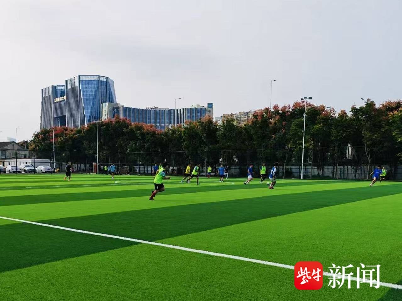 2月8日,周末的下午,天气正好,在江海大道南侧、秦灶路口东侧一块崭新的七人制足球场上,奔跑的身影伴随着欢笑声。球场旁是一排排标线清晰的停车位。几个月前,这里还是外面一片围挡、里面杂草丛生的闲置地块,崇川区城管局车辆秩序科科长许耀中介绍说:“这个地块面积约1万平方米,拆迁后一直闲置,我们根据‘三清一利用’工作要求,按照‘停车+文体’的思路改造成集停车场、足球场为一体的综合便民场地。新增了130个机动车停车位、4个快速充电车位,还配套了公厕、更衣室、培训室等等。”