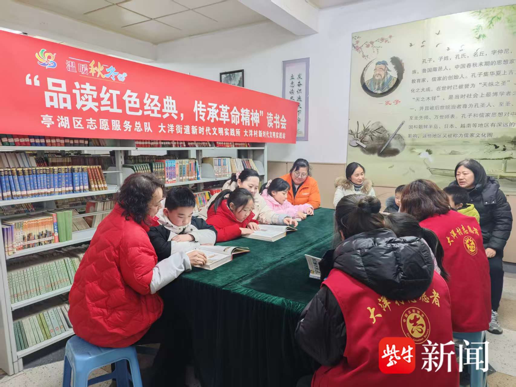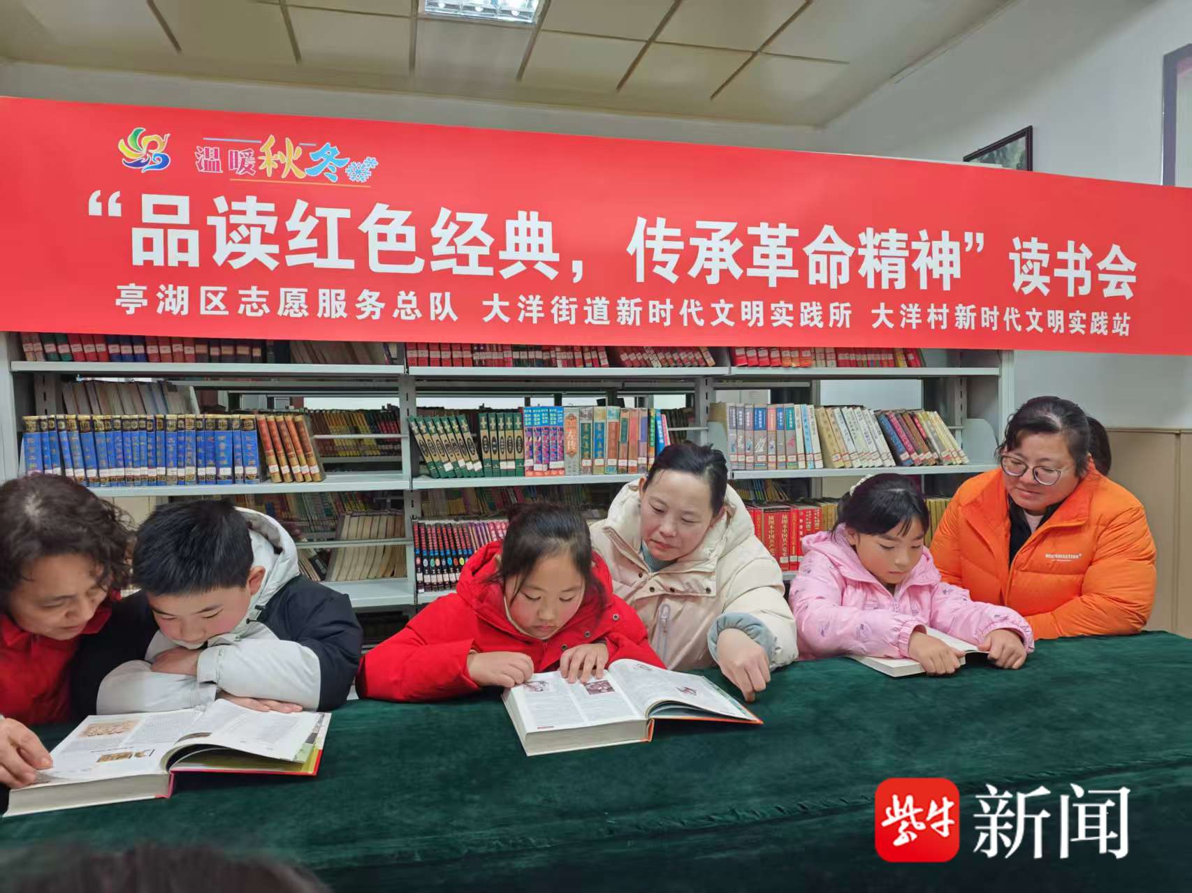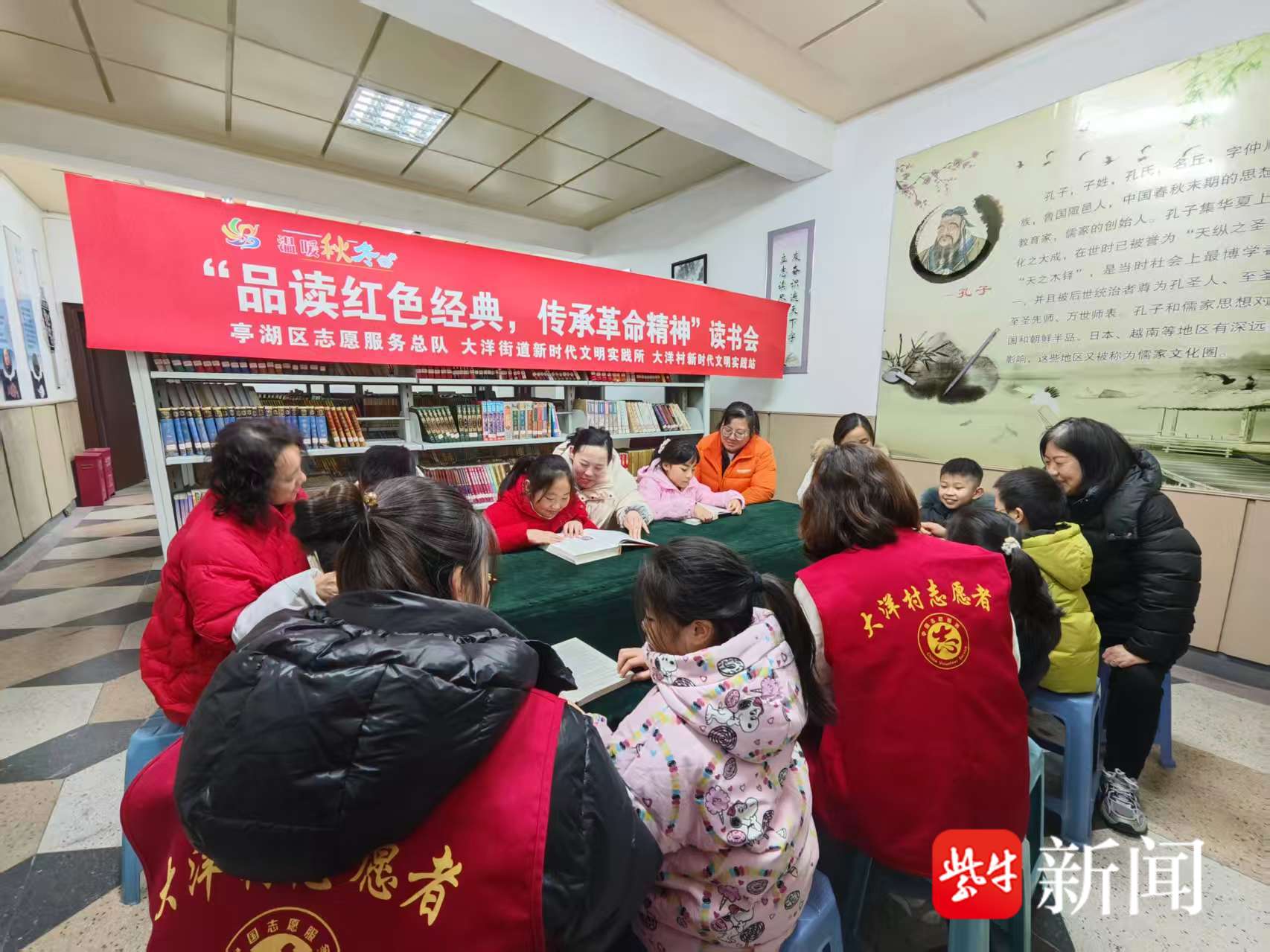 红色经典是历史的缩影,是精神的丰碑。2026年2月10日,盐城市亭湖区志愿服务总队、亭湖区大洋街道新时代文明实践所联合大洋村新时代文明实践站,在大洋村新时代文明实践图书馆内开展了“品读红色经典,传承革命精神”主题读书会,志愿者和寒假中的孩子们齐聚一堂,共赴一场以书为媒的心灵之约。