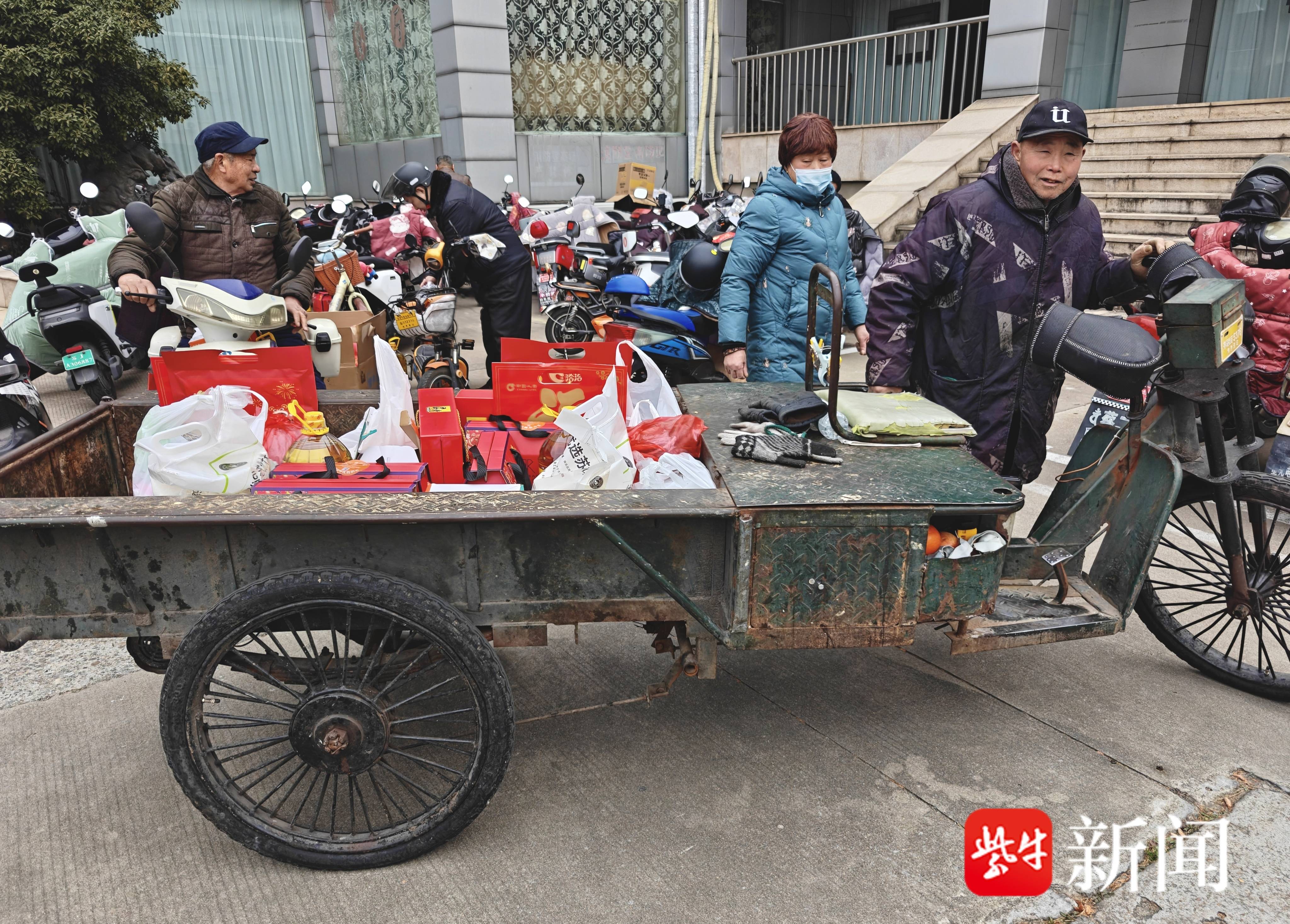 记者注意到,慰问现场物资丰富实用,都十分贴近百姓的日常生活。据了解,盐城市慈善事业发展中心负责了米、油等物资的采购工作,盐城市商业协会则通过公益募资精心准备了标准为600元每户的慰问大礼包。发放的慰问品中包含了粮油、坚果、燕麦、猪肉、棉拖鞋、电水壶等十余种年货。