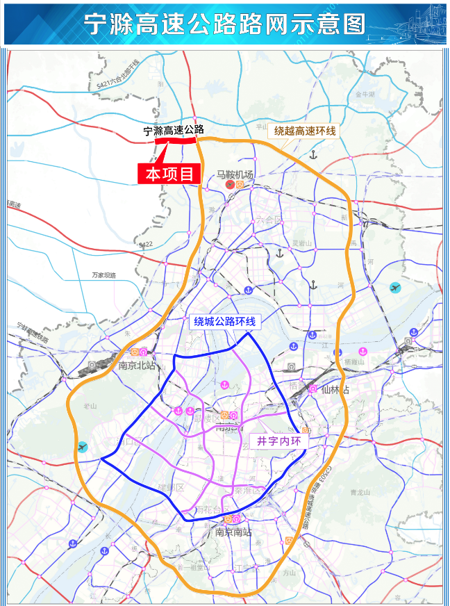 宁滁高速江苏段是《江苏省高速公路网规划(2017—2035年)》“十五射六纵十横”的重要组成部分,也是国家高速G36宁洛高速的联络线。