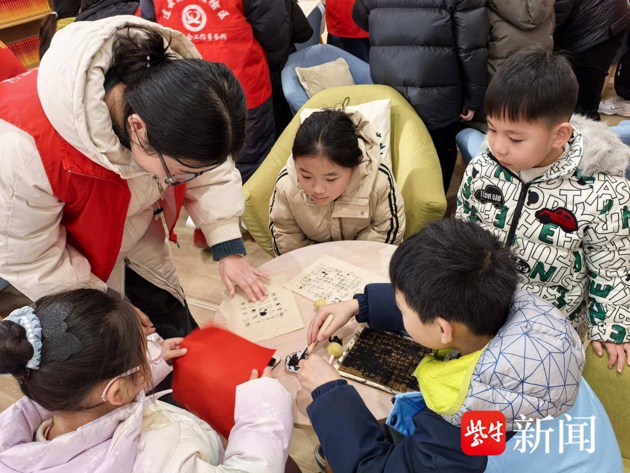 开班式现场暖意融融。主持人详细介绍了“暖冬学堂”的活动内容与愿景,丰富多彩的活动让在场师生、家长满心期待。大学生志愿者集体宣誓,承诺将以饱满的热情、负责的态度,投身志愿服务。仪式结束后,活字印刷术、非遗剪纸两大项目让孩子们沉浸式体验非遗文化,投壶小游戏让孩子们在欢声笑语中感受传统文化的魅力。
