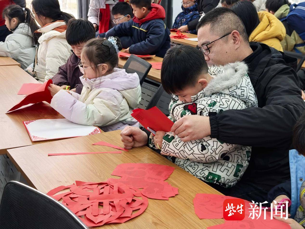 非遗剪纸活动区,“亲子共剪”的温馨场景格外动人。在志愿者指导下,家长与孩子默契配合,从折叠到勾勒,从镂刻到修剪,一步步将普通红纸变成寓意吉祥的窗花和新春主题作品。指尖翻飞,剪刀开合自如,活动不仅锻炼了孩子们的动手能力,也定格了亲子协作的温情瞬间。