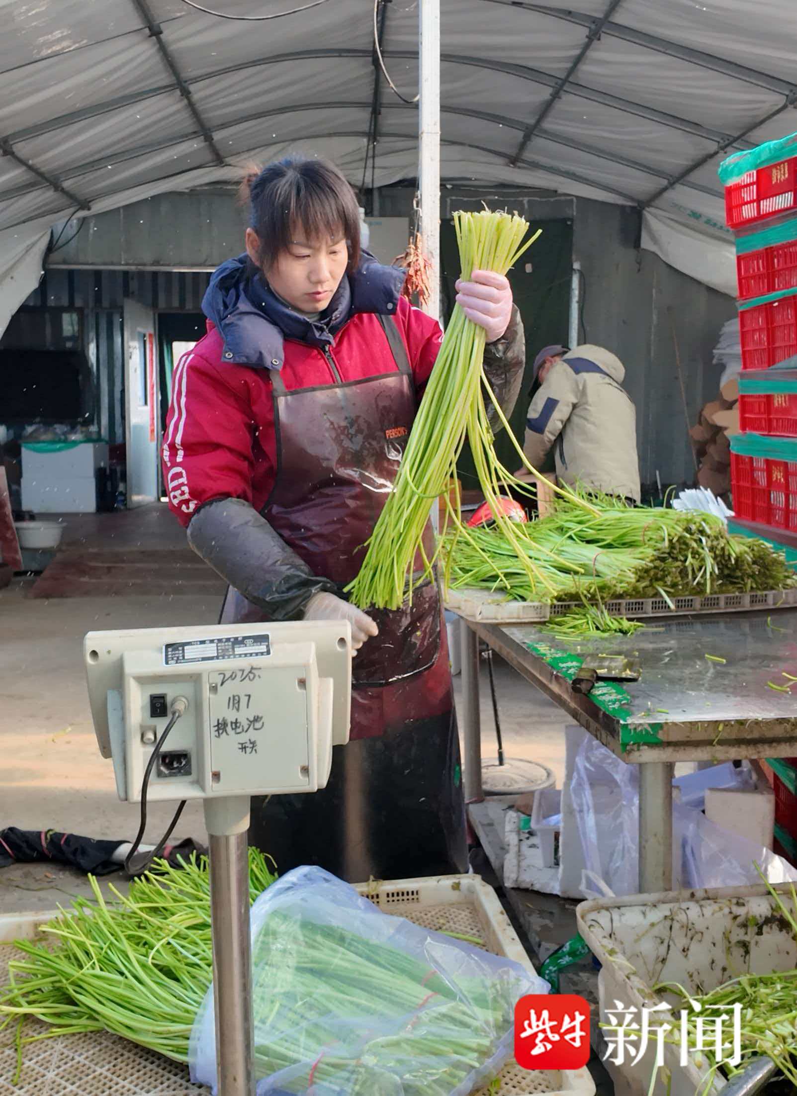 择菜、称重、包装、发货,基地内的每一道工序都井然有序,忙碌的身影勾勒出新春里最动人的图景。