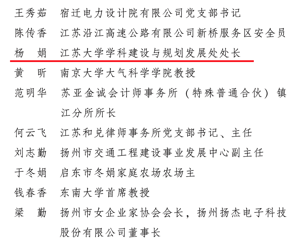 江苏大学杨娟教授被授予全国三八红旗手称号。