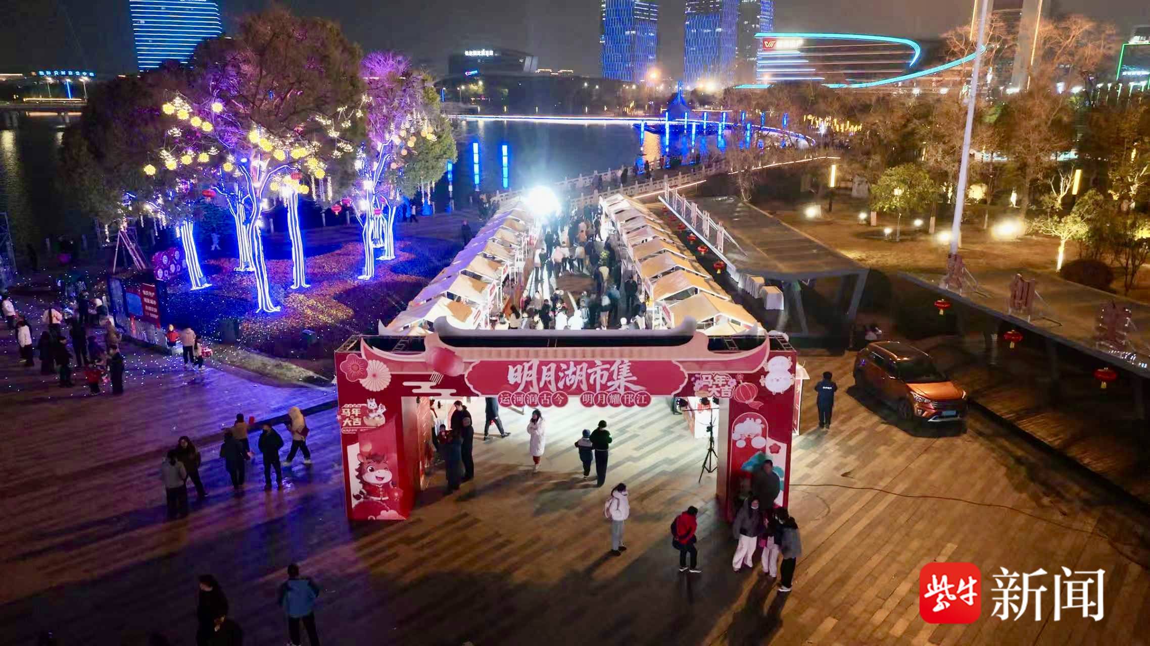 业内人士表示,今年明月湖的这场灯光秀,让人看到另一种可能——商圈,正在接替庙会,成为城市公共生活的新容器。明月湖广场体育场上,孩子们踢足球、打篮球;旁边的草坪上,年轻人躺着看“萤火虫”;市集里,一家老小边逛边吃。“在寸土寸金的城市核心,商圈提供了宽敞、温暖、设施完善的物理空间,具备承载大型节庆的天然属性。”新盛街道办事处主任蒋威告诉记者,传统民俗“借壳上市”,在商圈的高密度人流里找到新受众;商圈也因为文化的注入,有了温度和记忆点。明月湖畔这一夜,让市民游客感受到,商圈可以是这样的“公共客厅”;传统元宵佳节,也可以这样过。