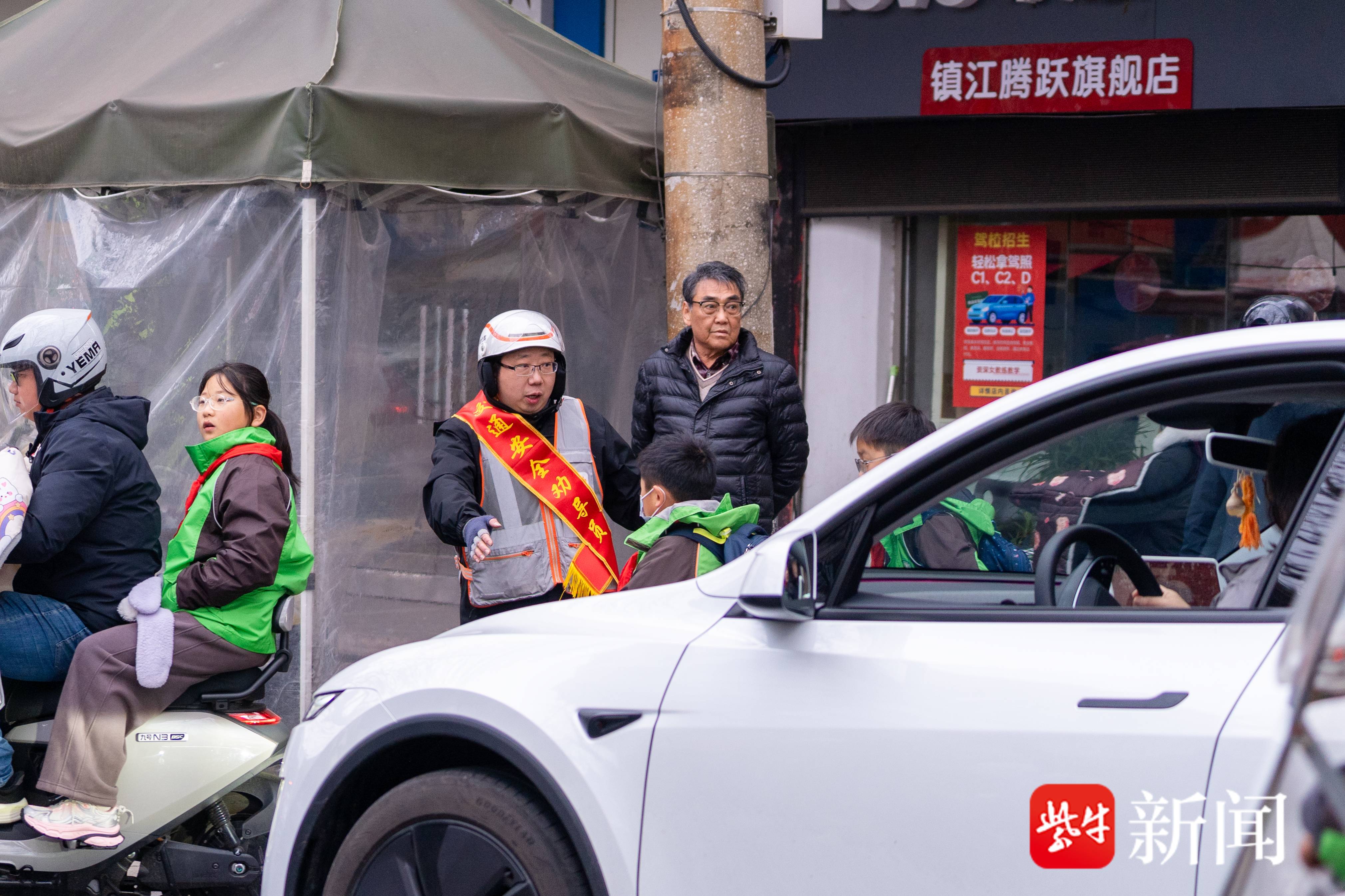 学雷锋日遇开学首日,镇江京口交警联合多公益团队启动京心护学行动