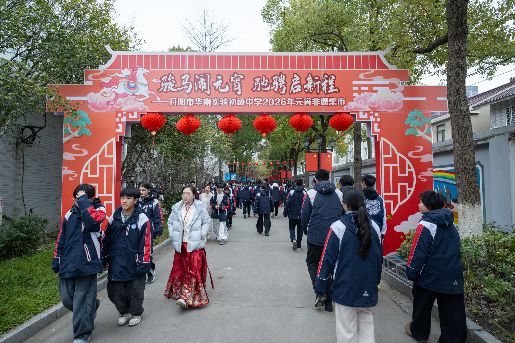 从华裳走秀到锣鼓开市,从诗词共读到筷子欢舞,从非遗市集到灯谜竞猜……丹阳华南实验初级中学将马年新意与传统文化深度融合,把“山水教育”的办学理念化作了可触可感的体验。