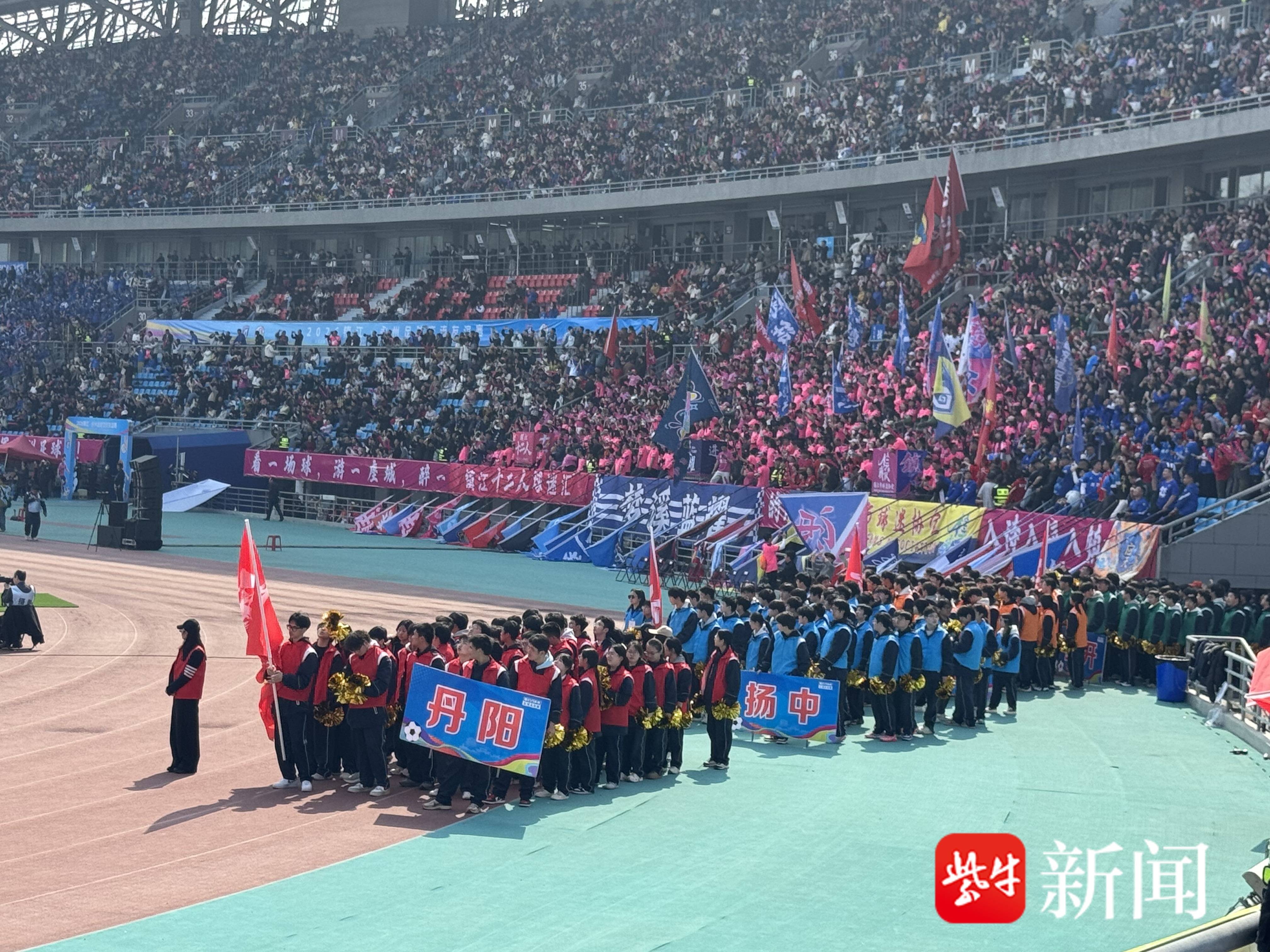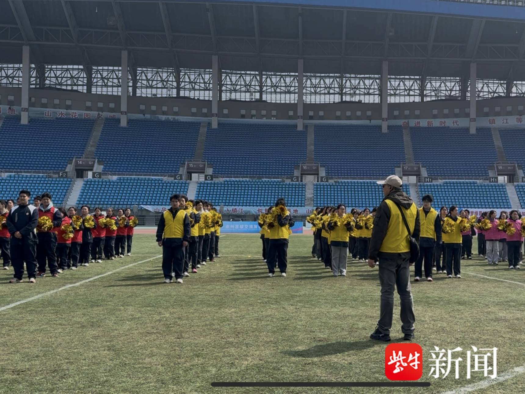 以青春澎湃传苏湘情谊!镇江高职校学子方阵表演燃动永镇足球友谊赛