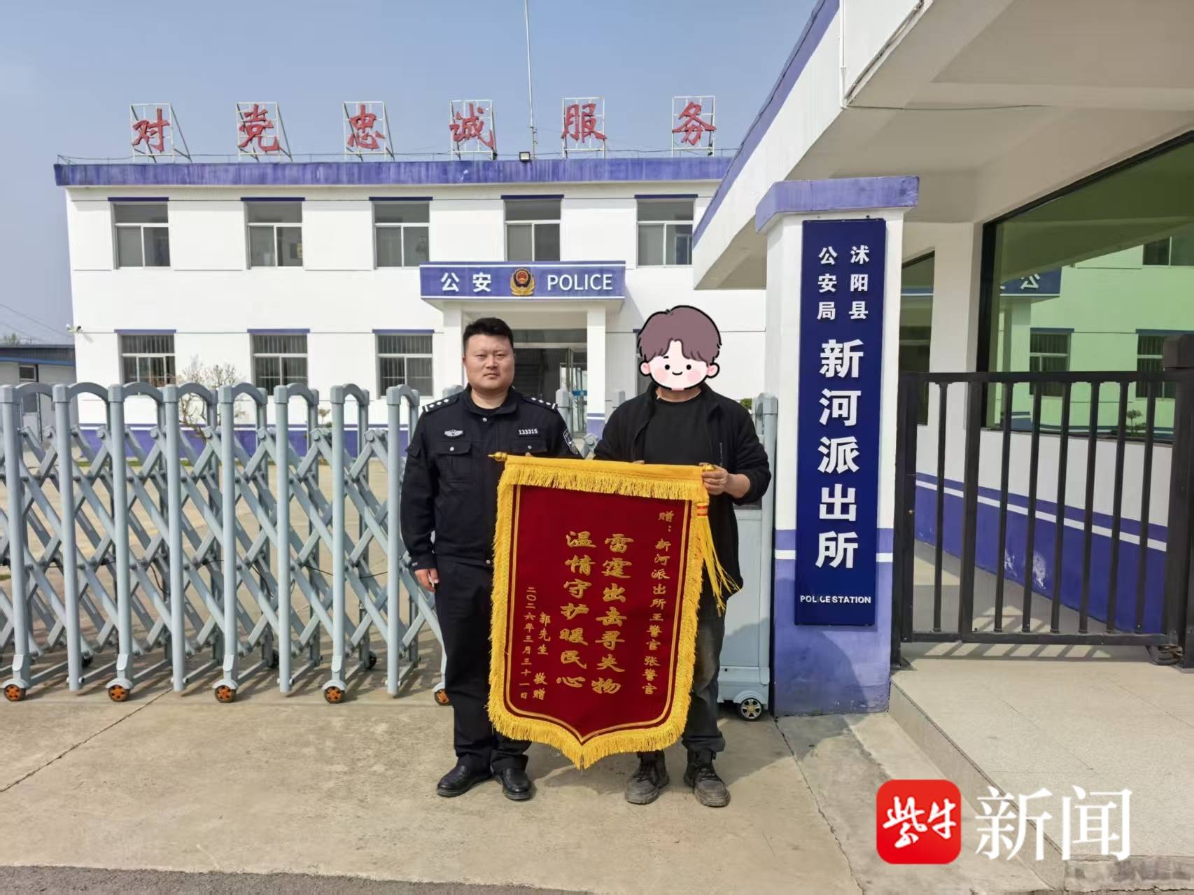 扬子晚报网4月3日讯(通讯员 毛雯雯 记者 高峰)4月1日,沭阳县新河派出所民警王海建,一天收到两面锦旗,鲜红的锦旗承载着群众对他快速破案、尽心为民的真挚谢意,是来自群众“最真诚的肯定”。