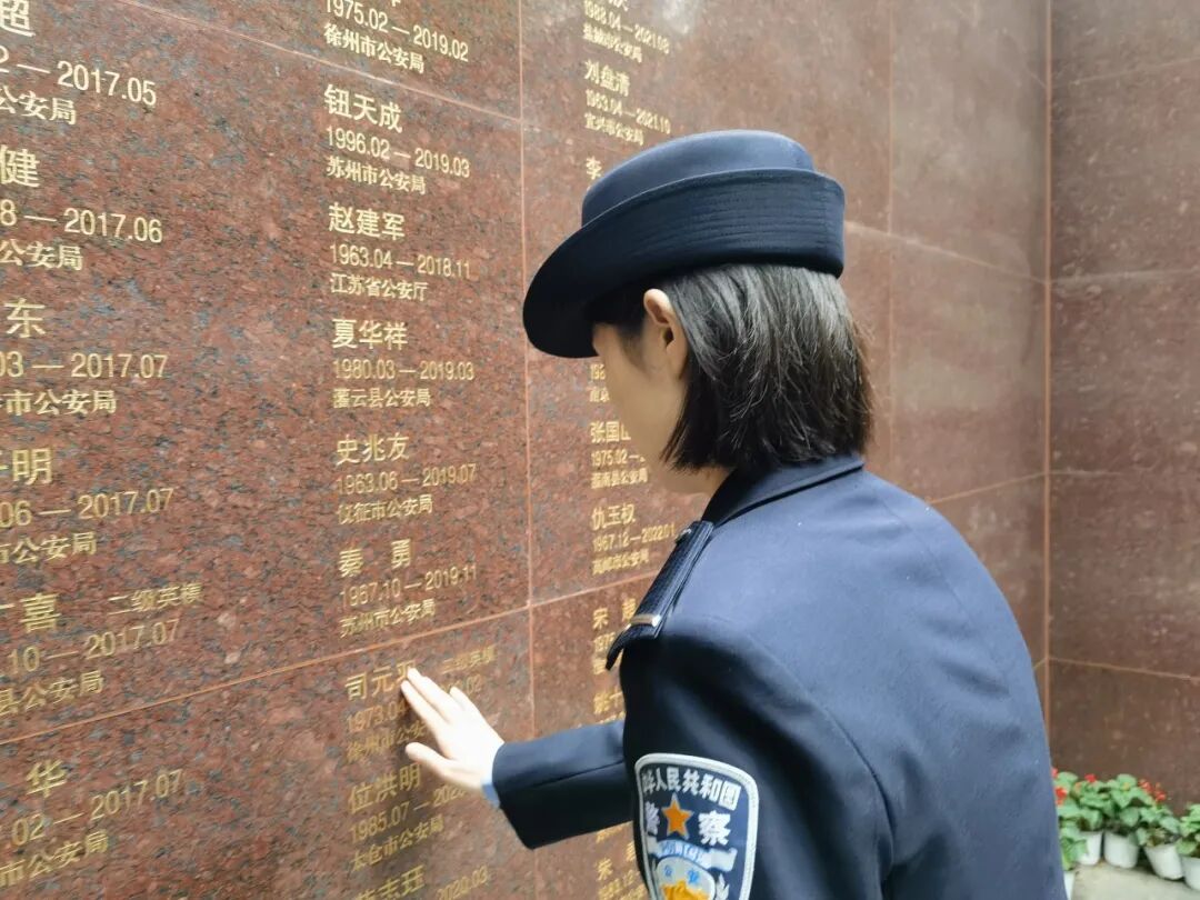 这对柔弱的母子,年年清明拎一大桶水上山,擦洗江苏公安英烈纪念墙。遗孀王婕说,“我就是看不得他们的名字有一点点灰。”