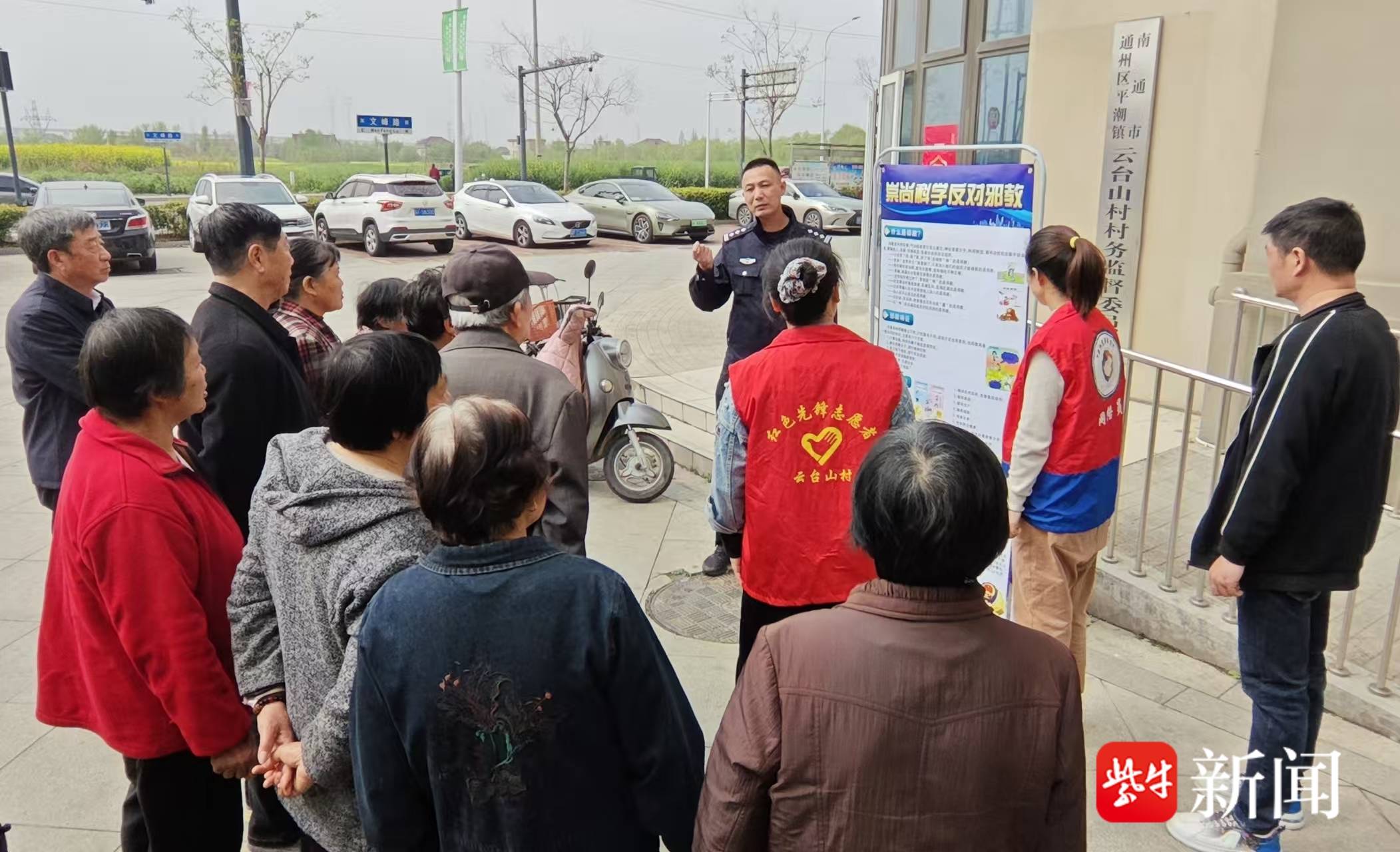 村委会特别邀请社区民警共同参与宣传活动。“乡亲们,什么是国家安全?哪些行为是破坏国家安全的?”黄警官围绕国家安全、军事安全、经济安全等领域,结合典型案例,用通俗易懂的南通方言为现场的村民朋友们带来了一场生动的接地气的法治宣讲课。为群众提供“零距离”的优质服务。现场的志愿者向过往的村民们发放《国家安全法》《非法集资警示案例汇编》《依法治理邪教建设平安通州》等宣传册页两百余份,进一步扩大了此次国家安全宣传教育的覆盖面。
