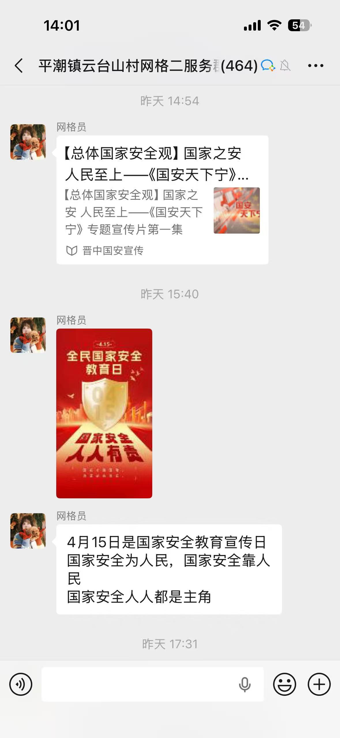 在第十一个国家安全教育日来临之际,为切实增强辖区内村民们的国家安全意识,提高防范和抵御安全风险能力,营造“国家安全、人人有责”的浓厚氛围,近日,通州区平潮镇云台山村委会组织开展了形式多样的线上线下宣传教育活动。